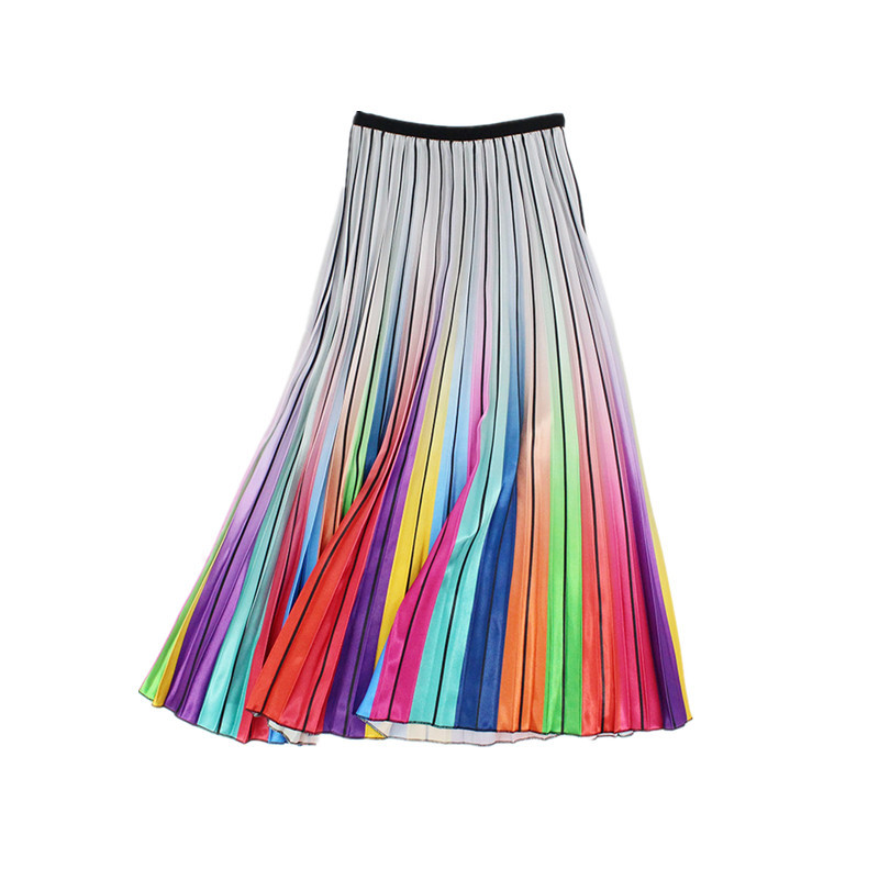 2021 New European and American Rainbow Printed Pleated Skirt Large Swing ins Mid-length A- line Skirt Women’s Autumn Skirt