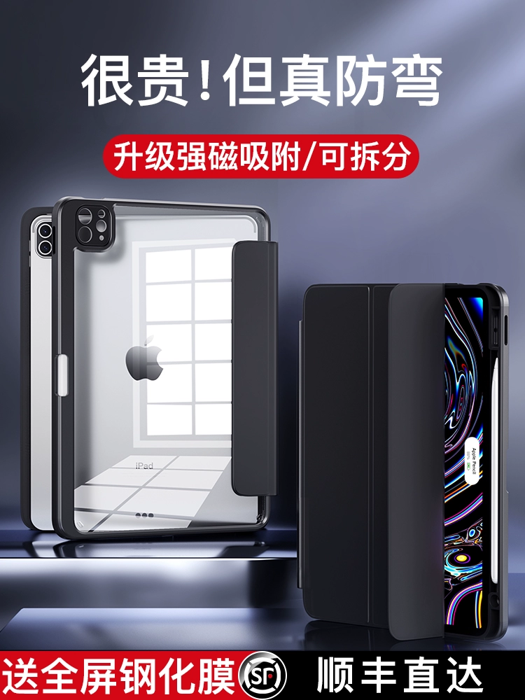 2021 new iPad Pro protective case anti-bend mini6 anti-fall Air4 Apple 11-inch tablet 2020 transparent case magnetic split 12.9 8th generation 2018 with pen slot 5 hard shell 7 suitable for 9 resistance