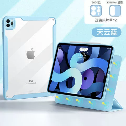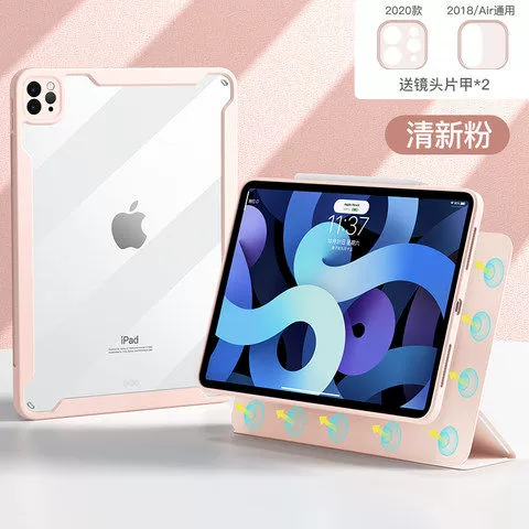 2021 new ipad pro11 protective case magnetic split mini6 transparent air4 anti-bending hard case 8.3 soft edge pro12.9 rotatable 2020 smart double-sided clip three-fold buckle 10.2 solid color