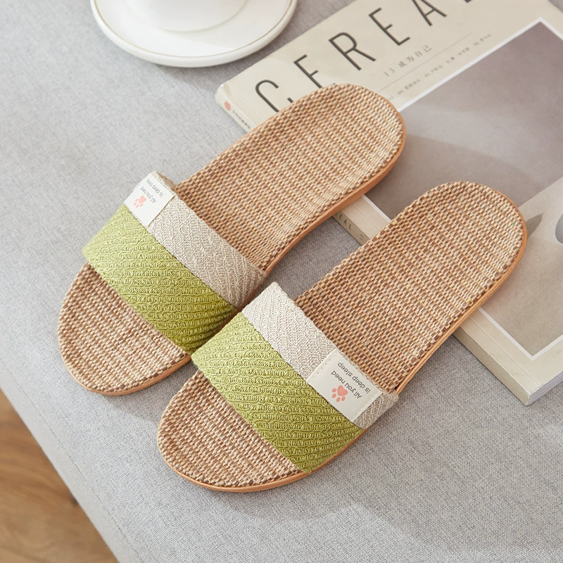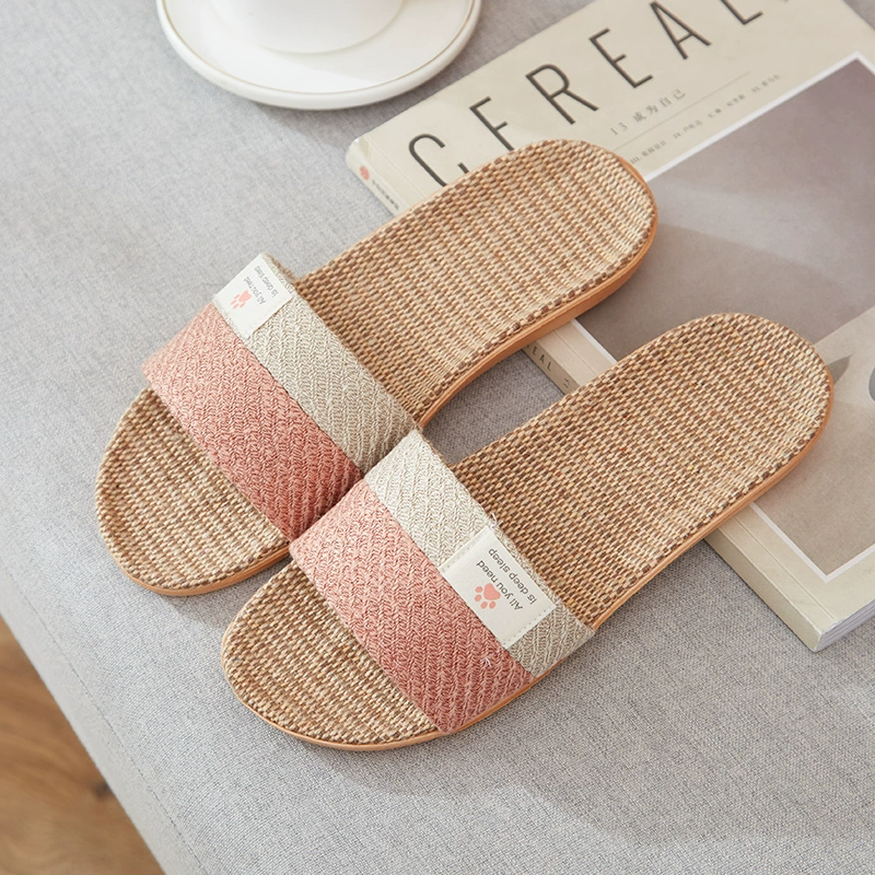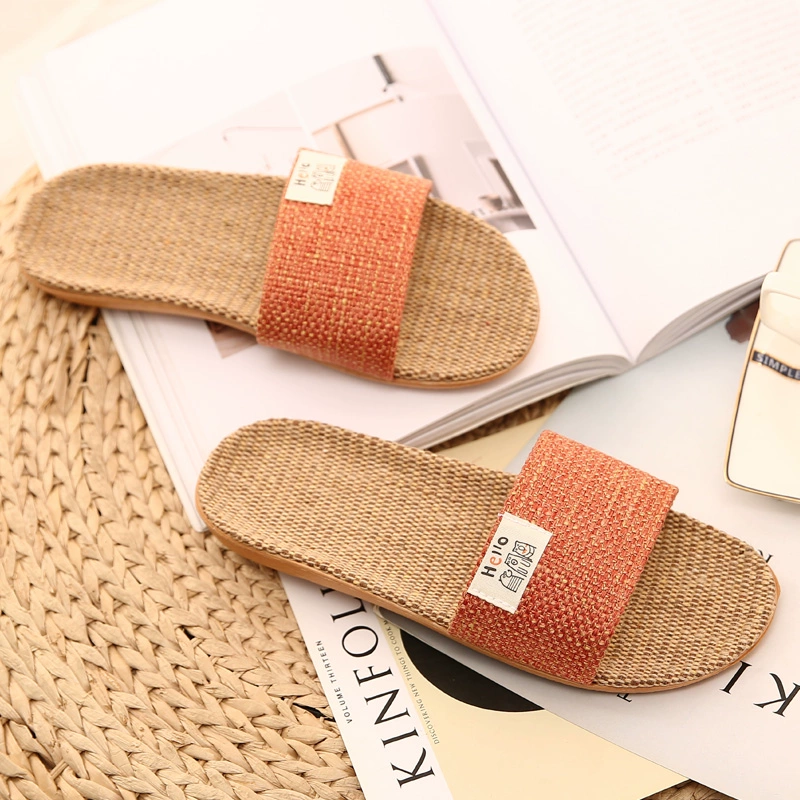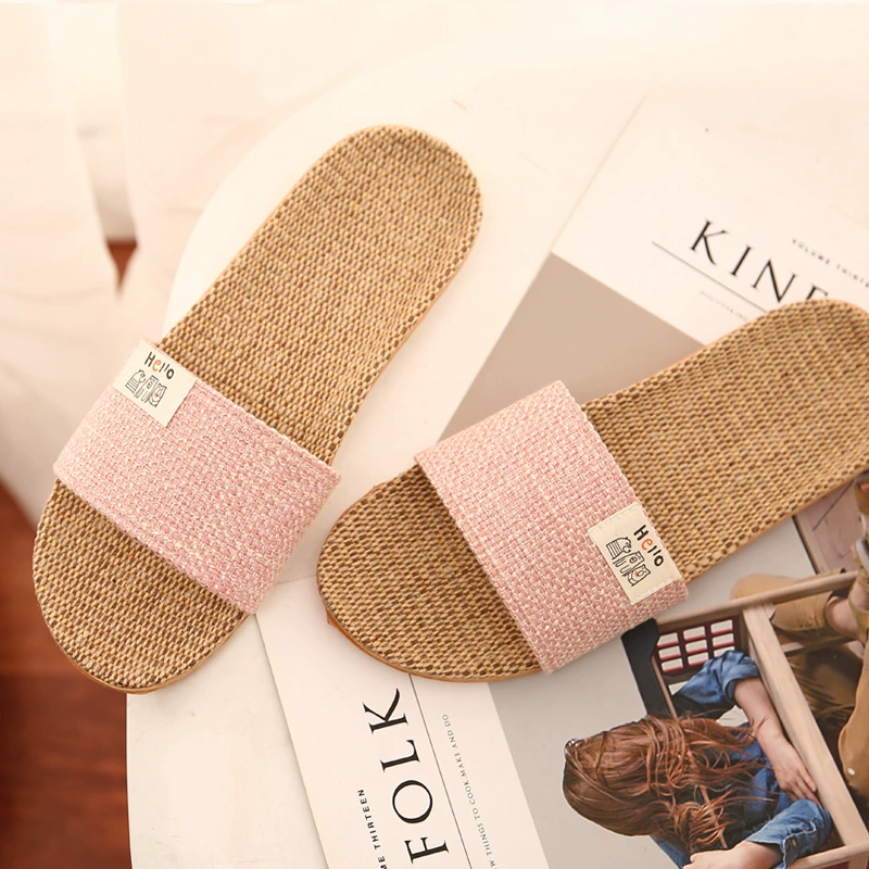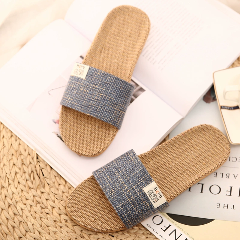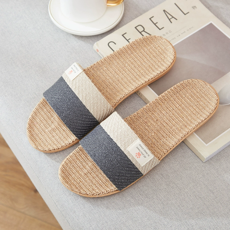 2021 New Japanese Style Linen Sandals for Couples at Home Women's Summer Household Sweat-Absorbent Breathable Simple Non-Slip Slippers
