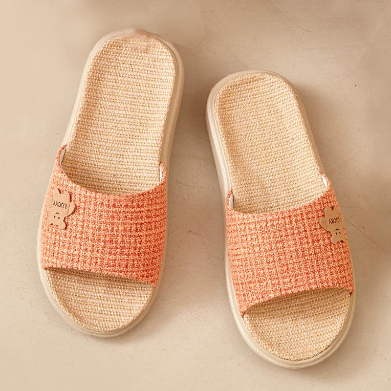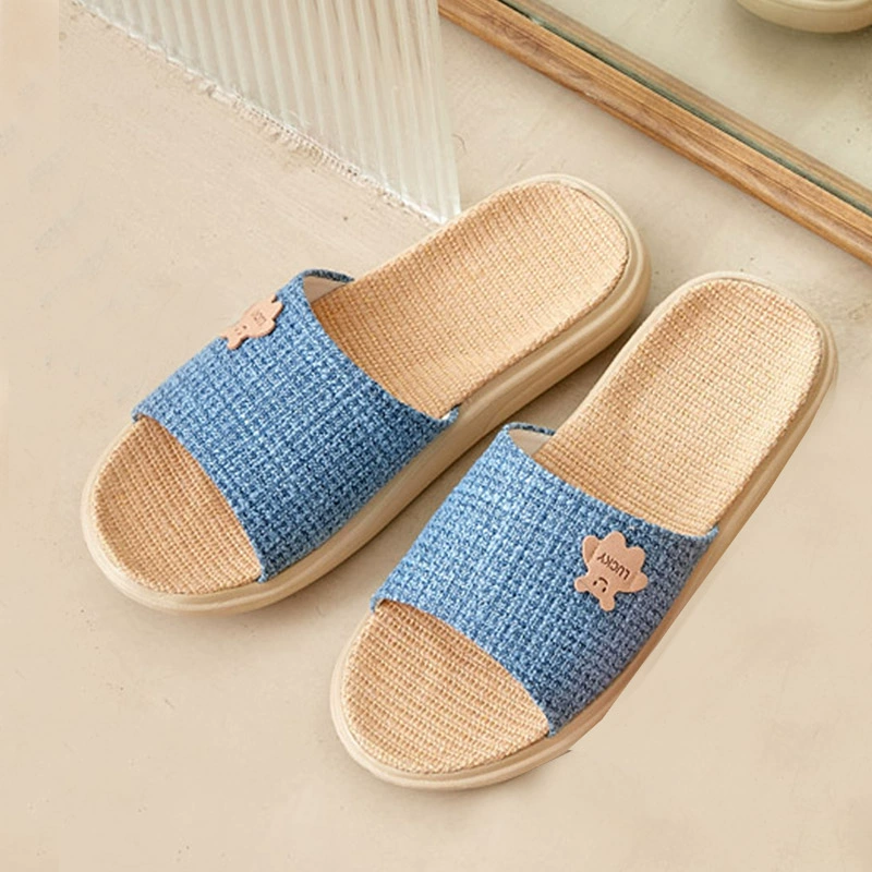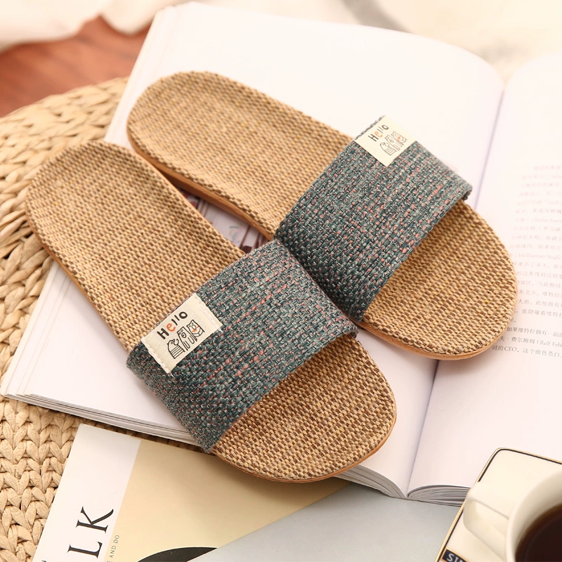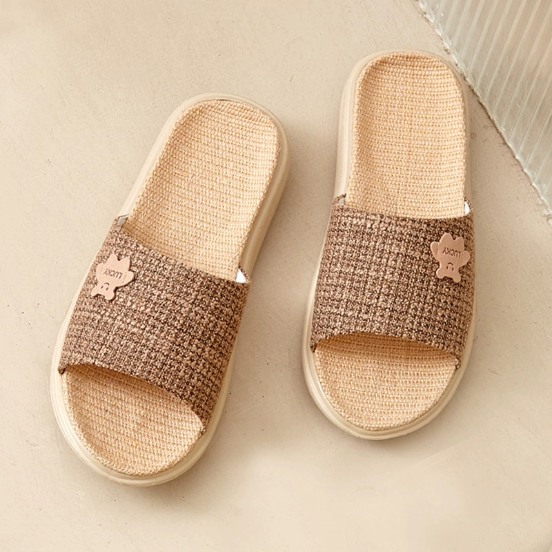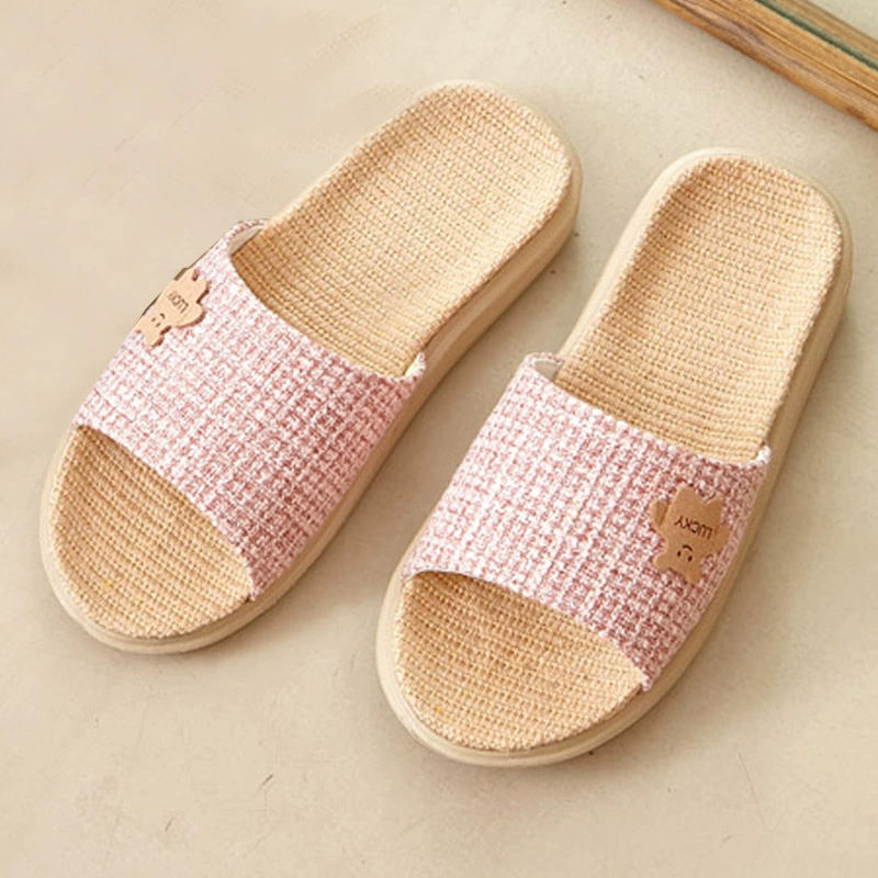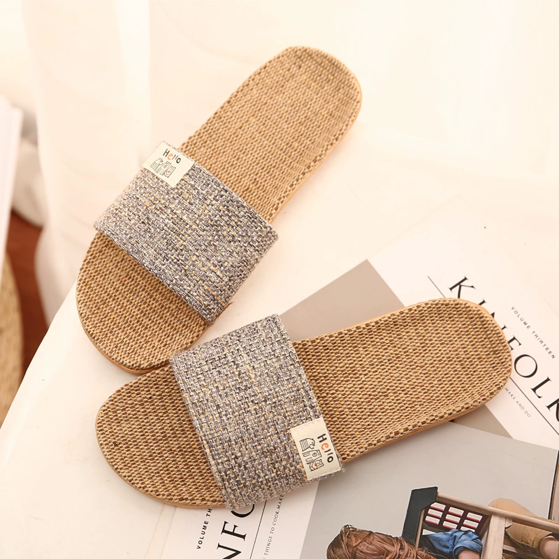 2021 New Japanese Style Linen Sandals for Couples at Home Women's Summer Household Sweat-Absorbent Breathable Simple Non-Slip Slippers