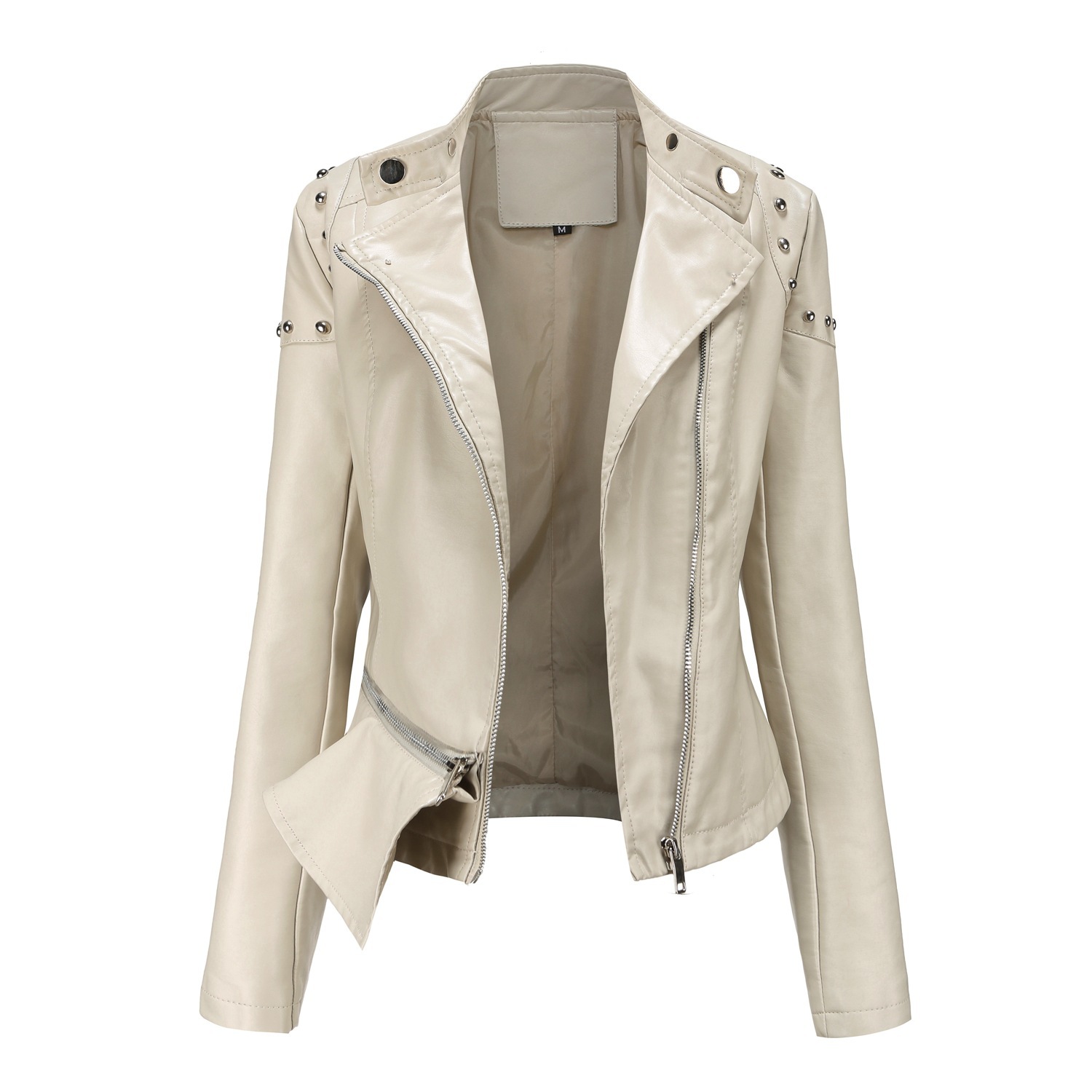 | nameOriginal | 2021 new Rivet fashion stand collar leather coat women's solid color jacket women's spring and autumn coat women's irregular hem |