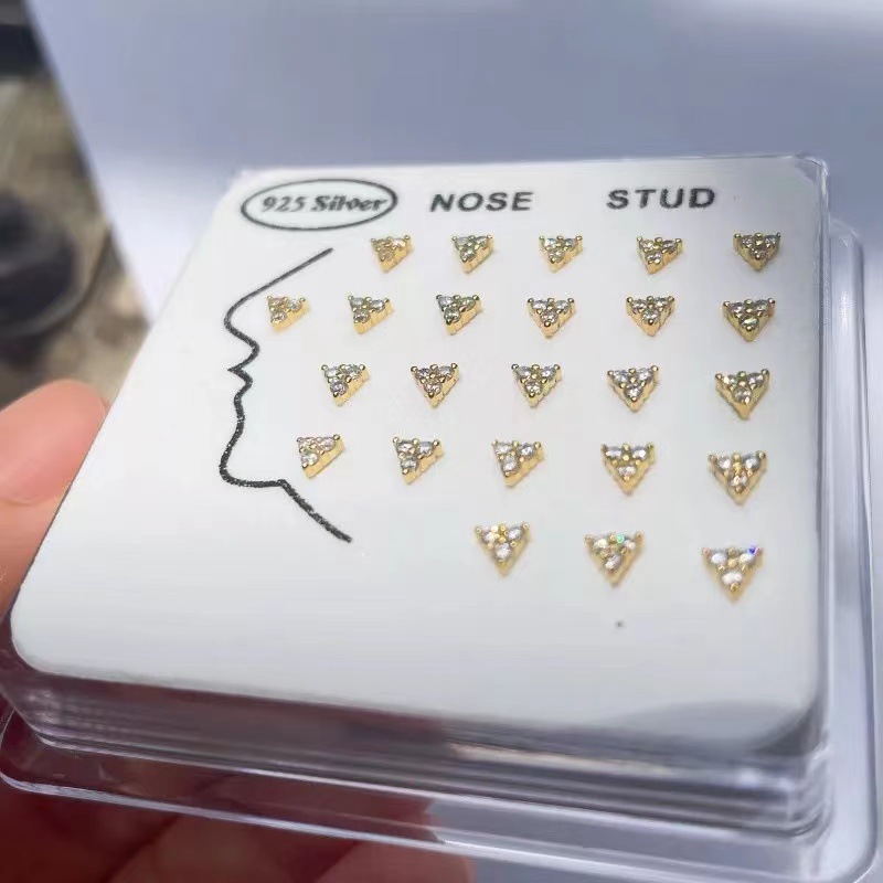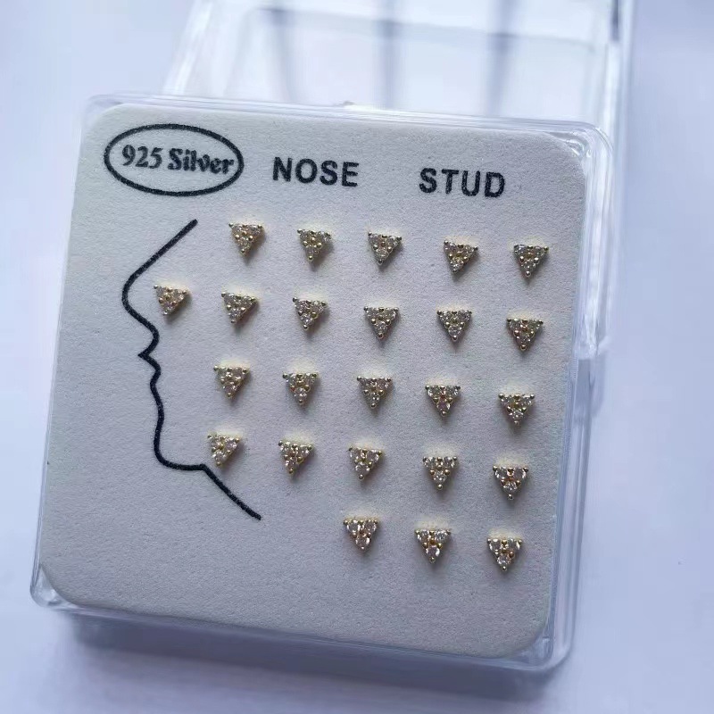 2021 New s925 sterling silver micro-inlaid zircon nose nail straight nose nose ring European and American foreign trade body piercing jewelry