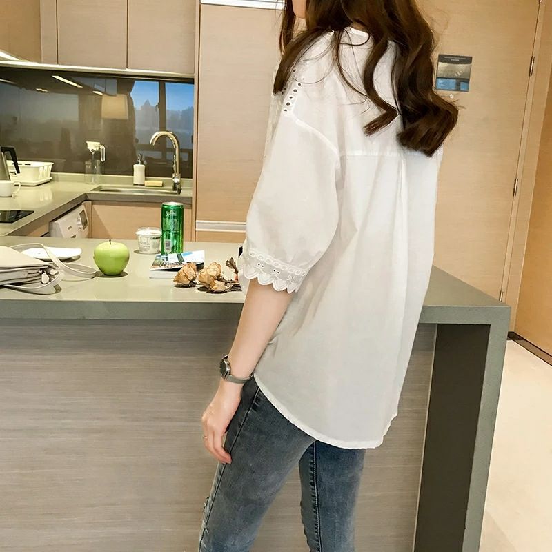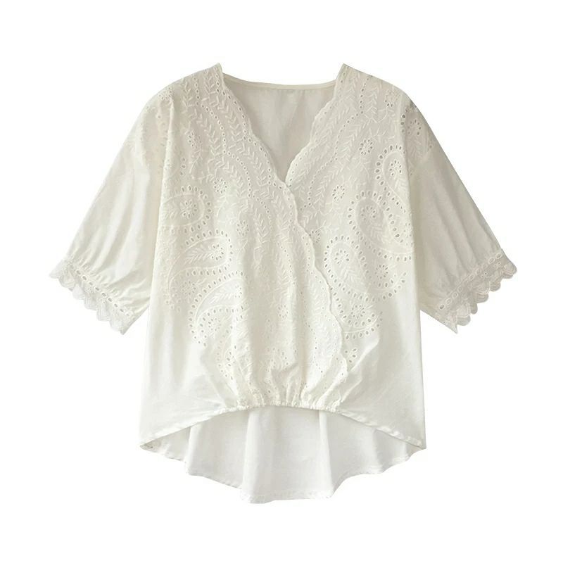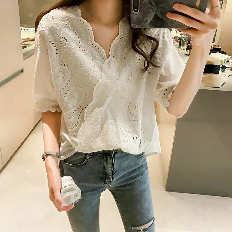| nameOriginal | 2021 summer and autumn new sexy crocheted hollow lace shirt Women's loose belly covering V-neck top bottoming shirt fashion |
