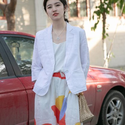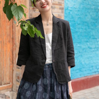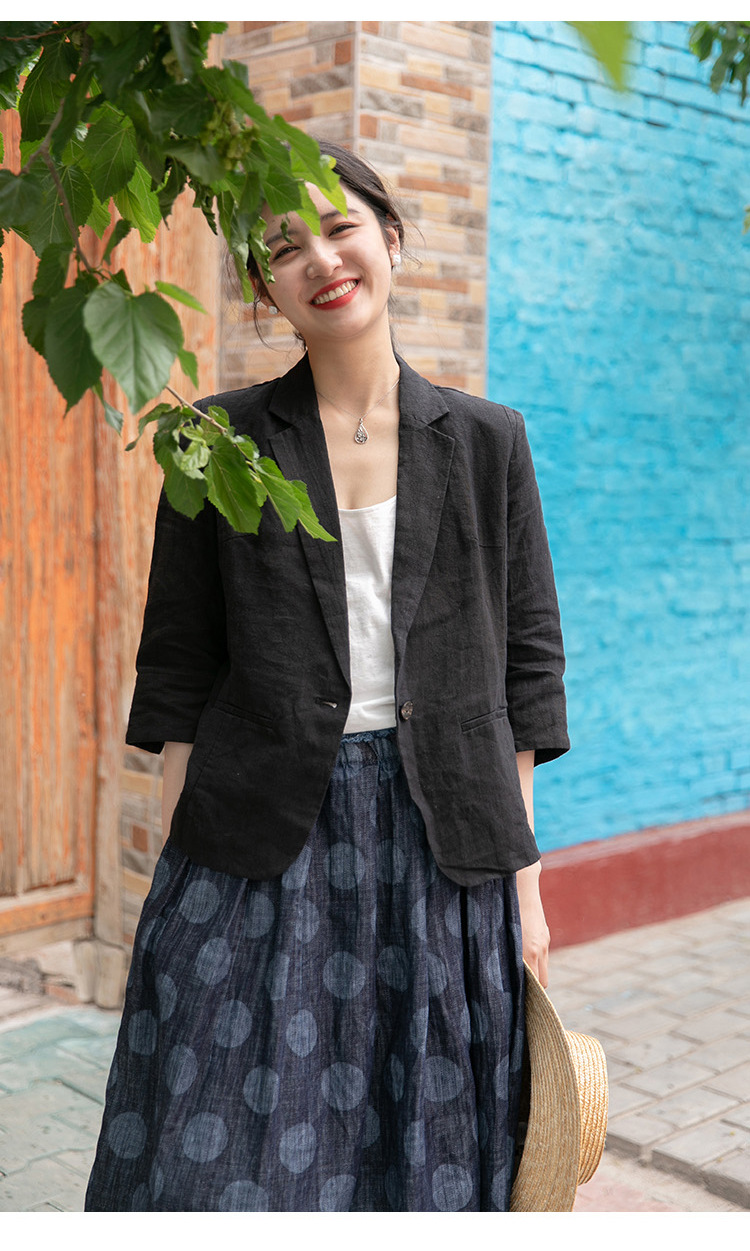 nameOriginal | 2021 summer new artistic retro half sleeve small suit linen jacket women's thin solid color short small suit |