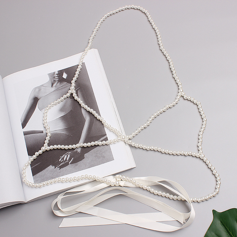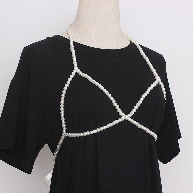 2021 summer new heavy work niche hand-woven beaded strap vest top Pearl vest bra outer wear Women