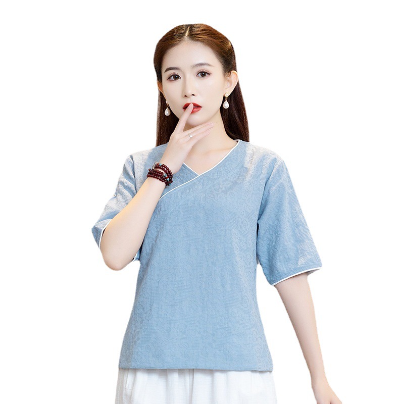 | nameOriginal | 2021 summer new women's clothing retro artistic Chinese cotton and linen short-sleeved top loose casual Zen tea clothes ear picking clothes |