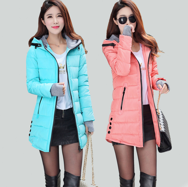 2021 Winter new Korean style plus size mid-length hooded slim-fit thickened gloves down cotton-padded coat women’s coat