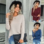 2022 Amazon Foreign Trade New Solid Color Loose Top Women’s American Station European and American Style Fashion Casual Round Neck T-Shirt