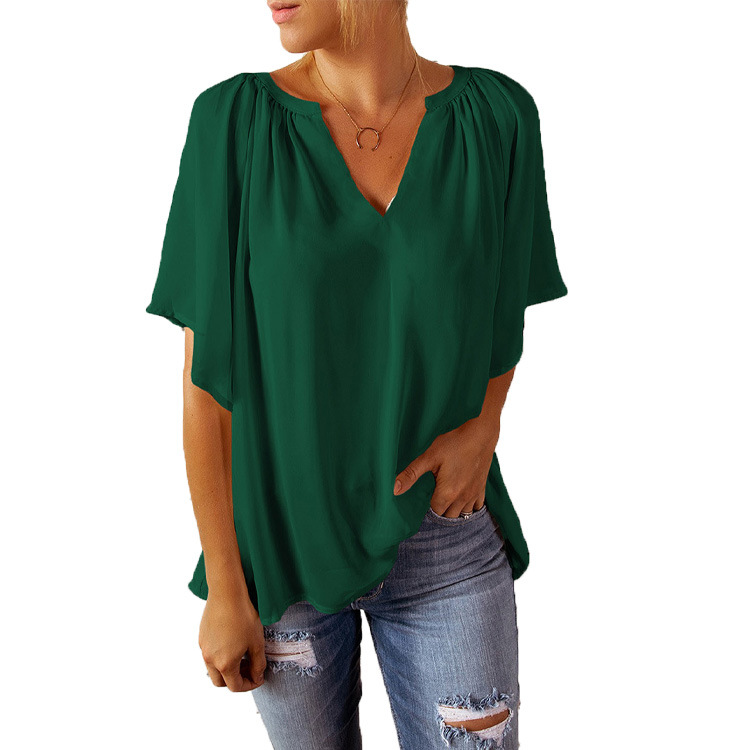 2022 Amazon Summer New Loose Half Sleeve T-shirt European and American Women's Cross-border V-neck Pullover Top