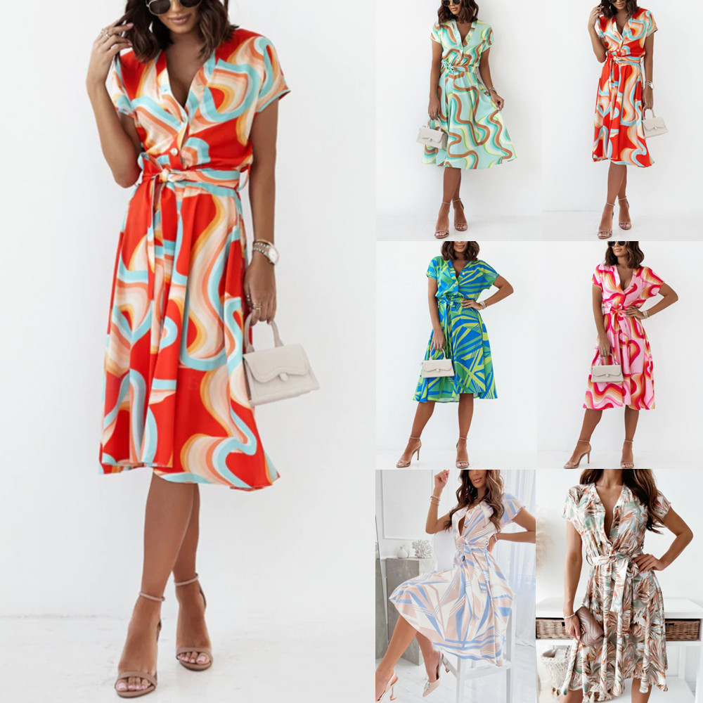 | nameOriginal | 2022 Amazon wish AliExpress Explosions Summer European and American Style Fashion Printed Short Sleeve V-Neck Dress for Women |