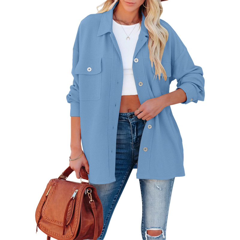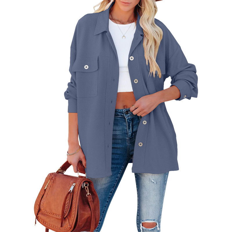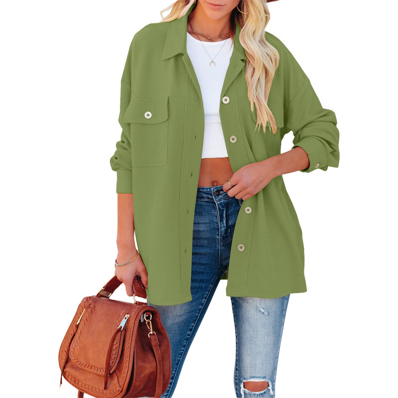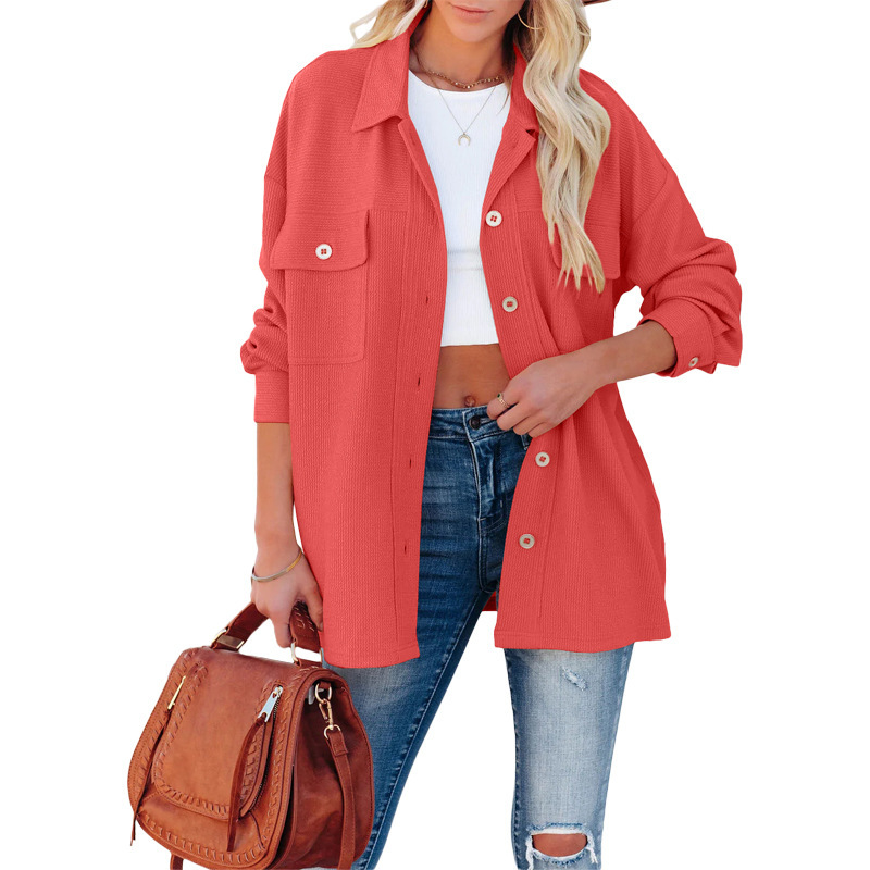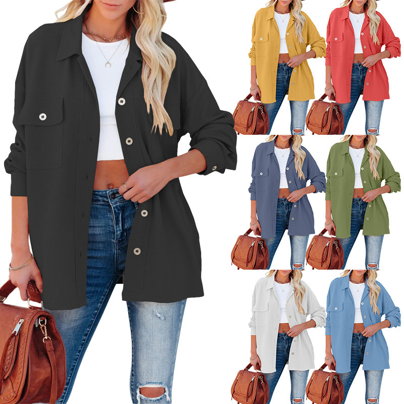 2022 Amazon women's autumn and winter new cross-border European and American casual loose women's polo shirt corduroy shirt Women