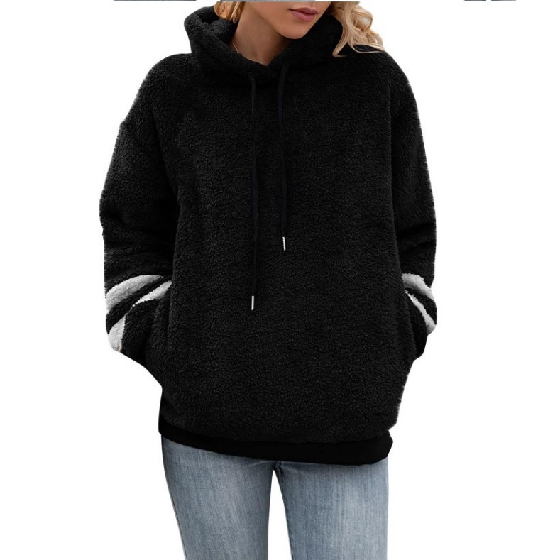 | nameOriginal | 2022 autumn and winter cross-border Amazon women's clothing loose furry stitching long sleeve thread hooded rope coat for women |