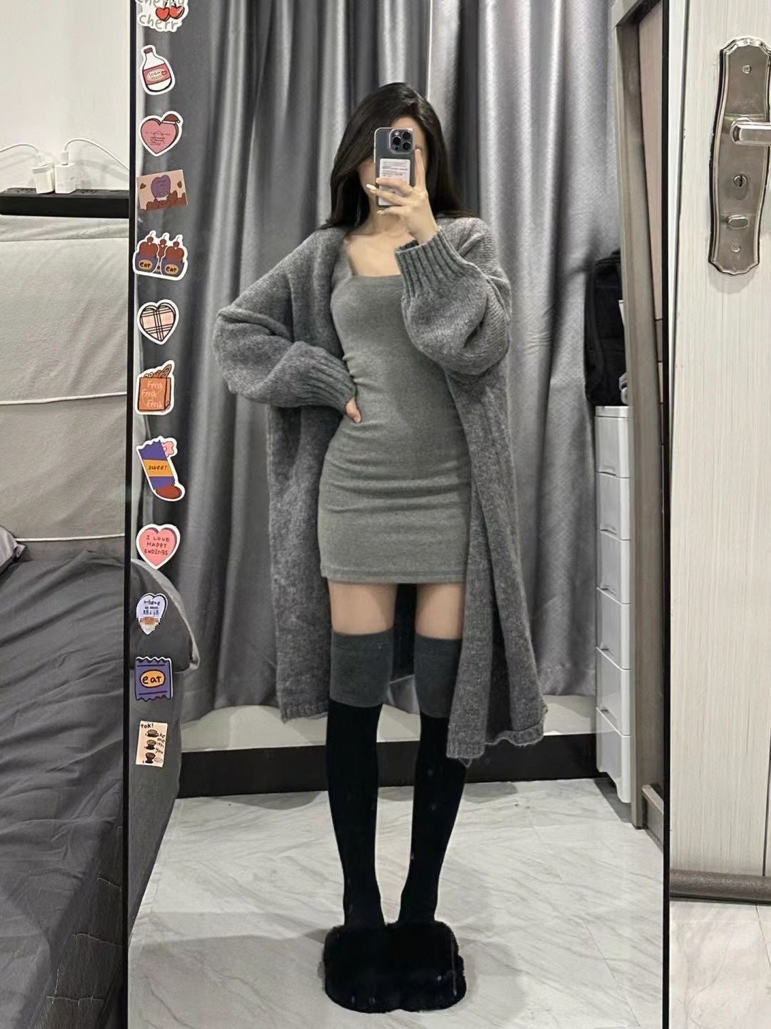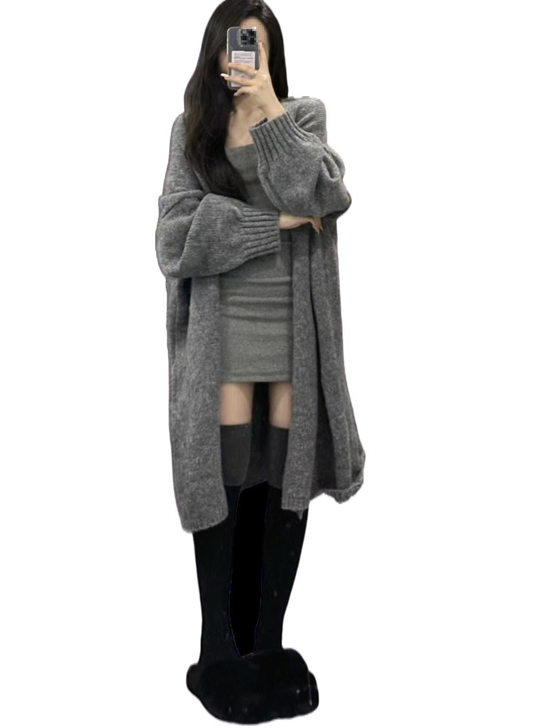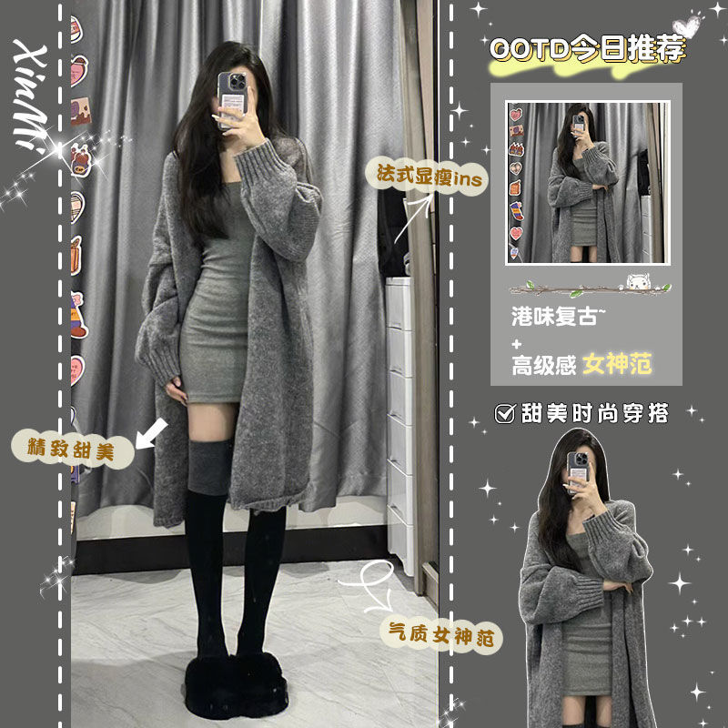 | nameOriginal | 2022 autumn and winter new soft waxy coat women's cardigan long sweater versatile waist slimming dress two-piece suit |