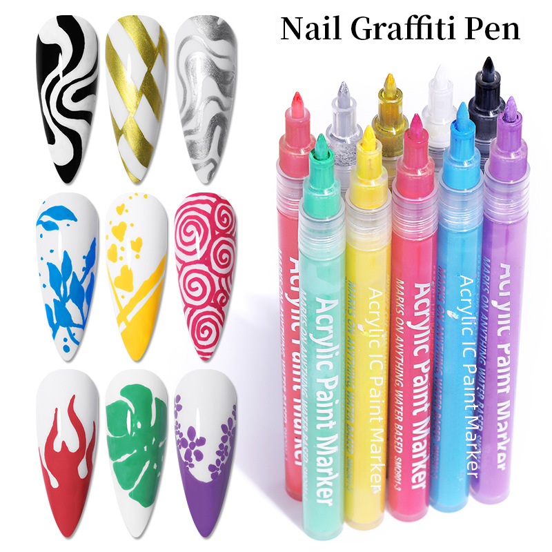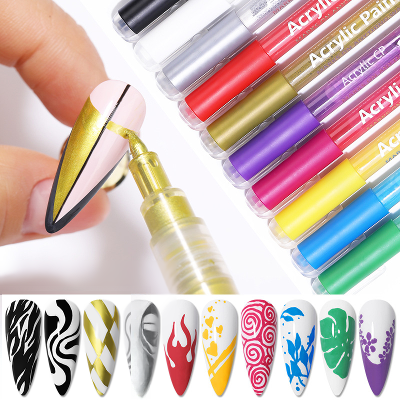2022 cross-border hot nail pen 3D painting pen graffiti pen nail painting pen nail point flower pen DIY nail brush