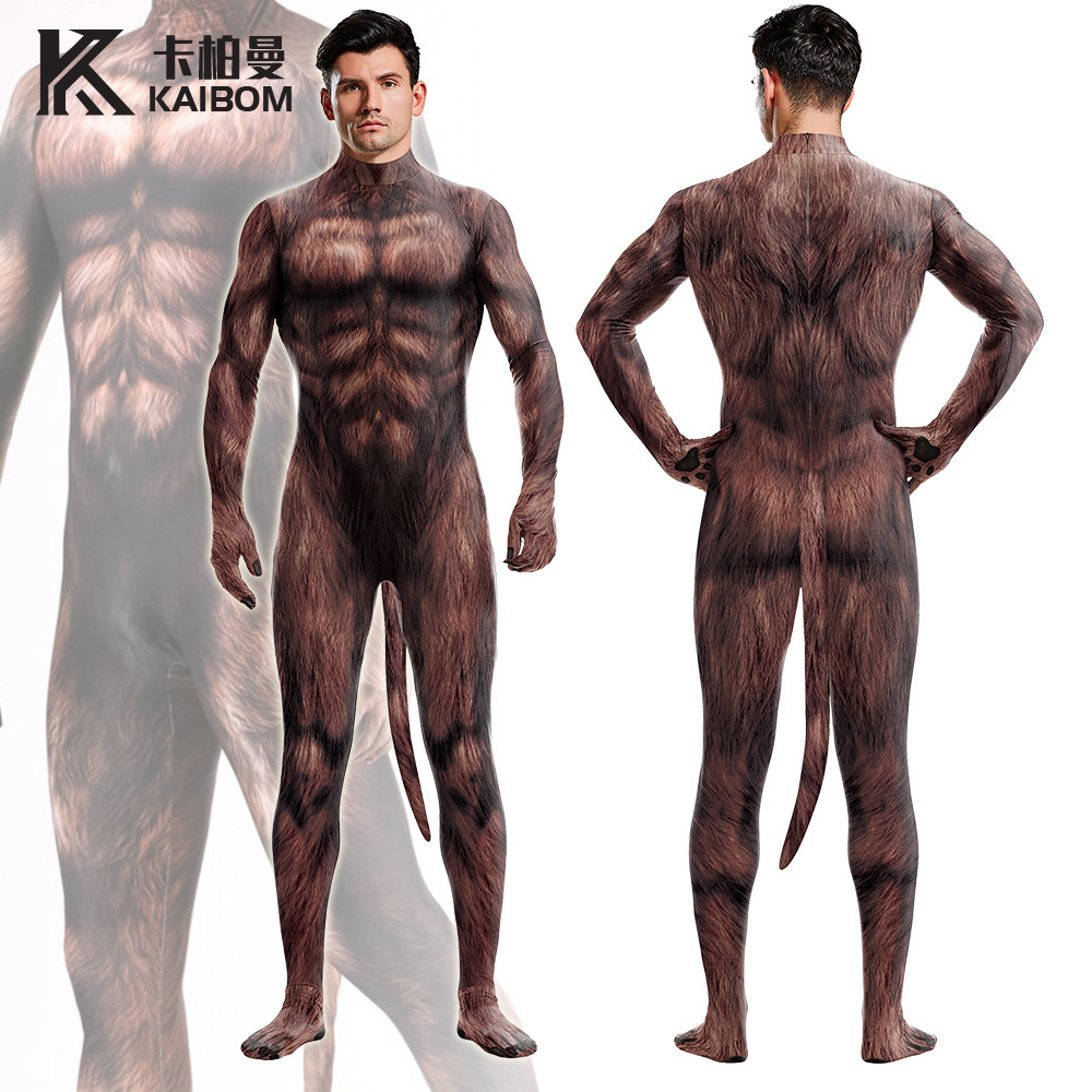 2022 cross-border new animal muscle print cos animal jumpsuit tight jumpsuit performance clothing for men