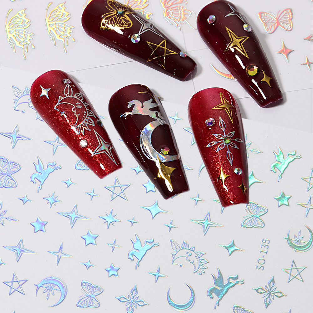 | nameOriginal | 2022 cross-border supply new nail stickers simple four-color butterfly star love flame water drop adhesive stickers |