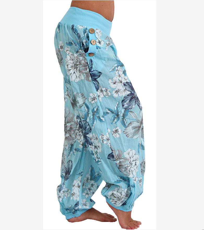 2022 cross-border wish AliExpress European and American loose printed wide leg pants women’s casual trousers