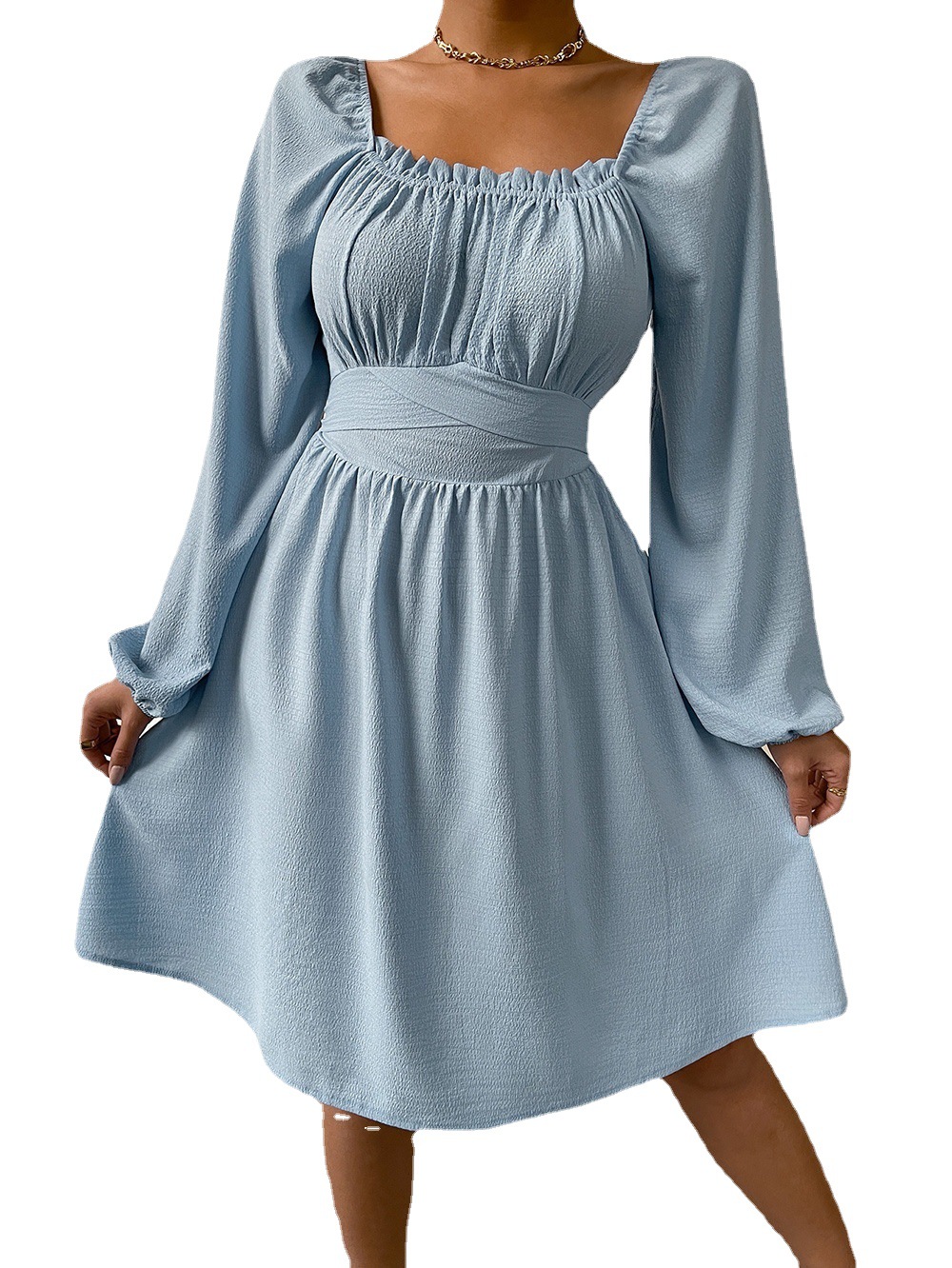 | nameOriginal | 2022 Early Autumn New Arrival Pullover Square Collar Long Sleeve High Waist Lace A- Line Skirt Elegant Commuter Amazon Dress for Women |