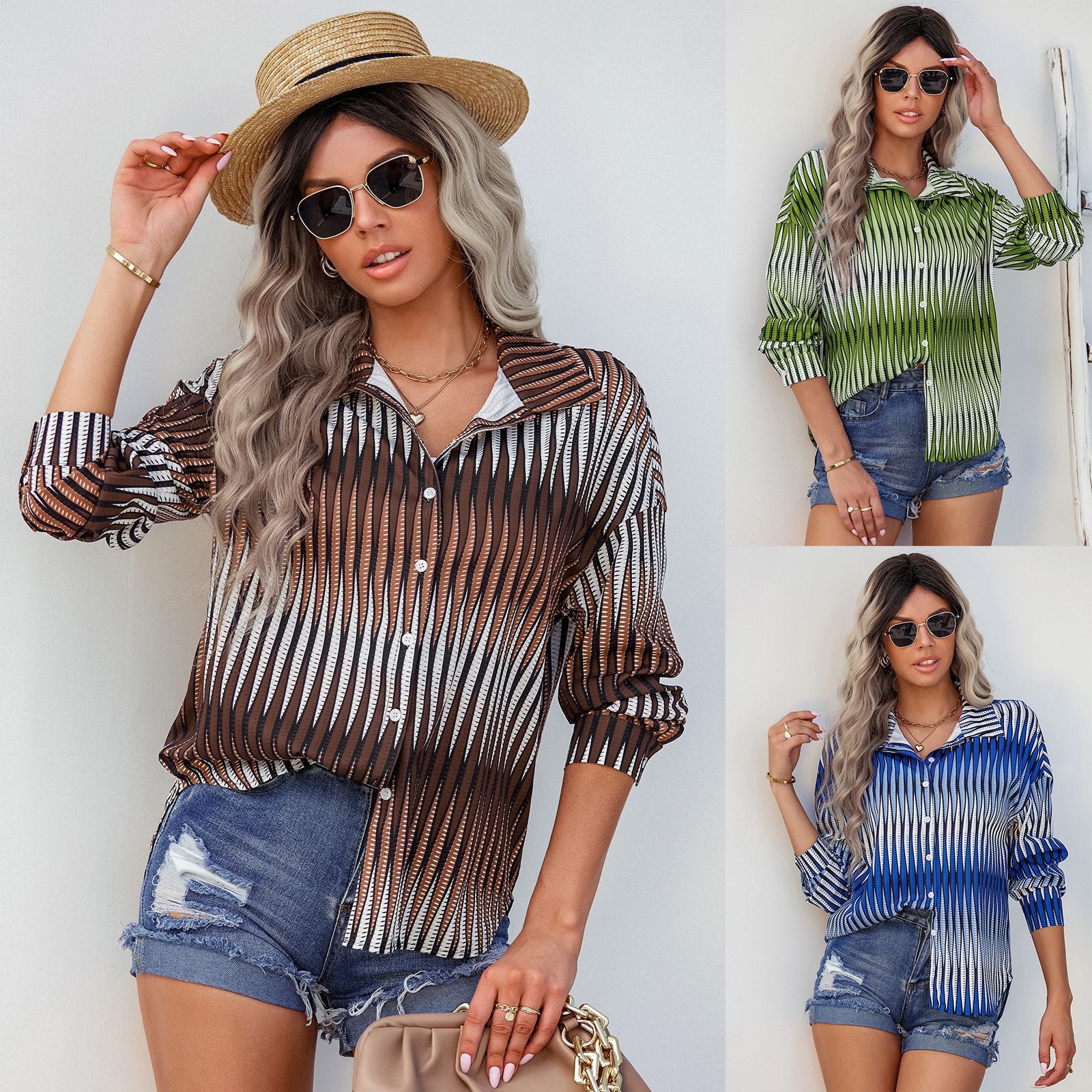 | nameOriginal | 2022 Early Autumn New Fashion Loose Top Women's Amazon European and American Foreign Trade Women's Lapel Long Sleeve Striped Shirt |