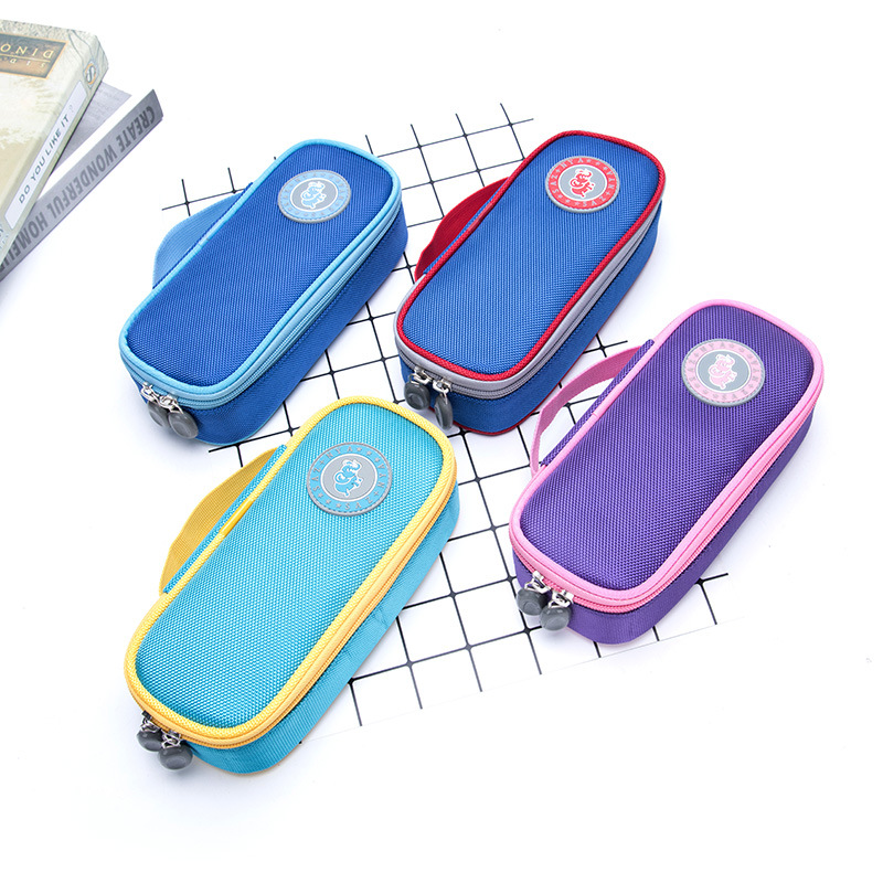 2022 elementary school student pencil case stationery bag large capacity pencil case simple Japanese and Korean solid color Oxford cloth portable pull fashion