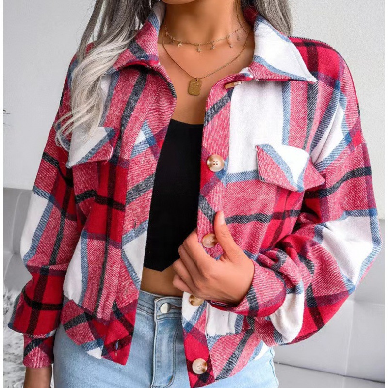 2022 European and American autumn and winter plaid woolen jacket coat lantern long sleeve Amazon ins cross-border women's clothing