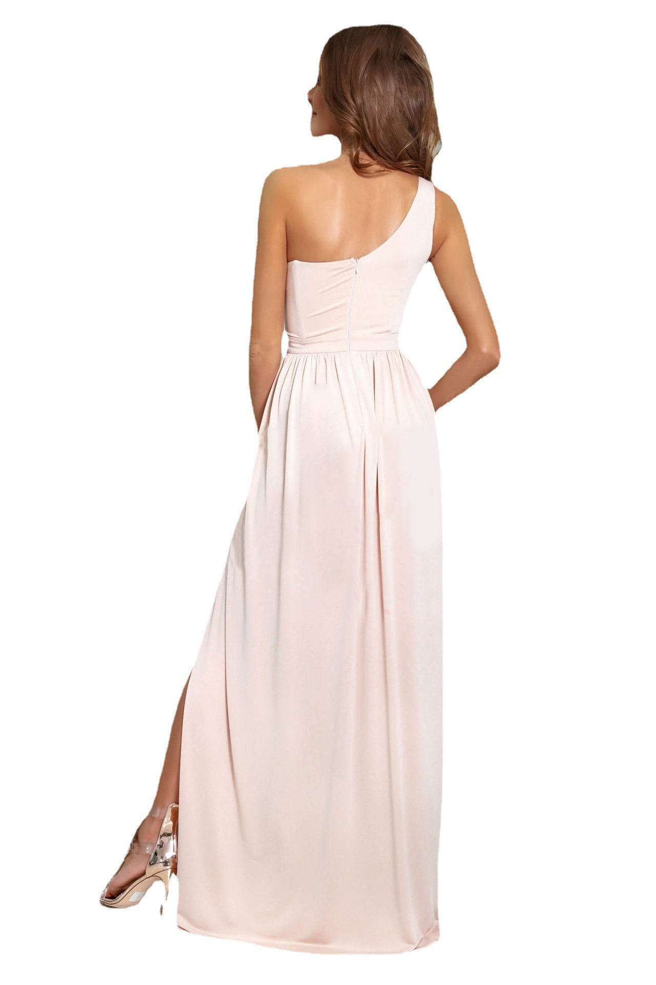 | nameOriginal | 2022 European and American Cross-border New Sexy Solid Color Single Shoulder Hollow Neck High Waist Split Super Long Dress Women's Clothing |