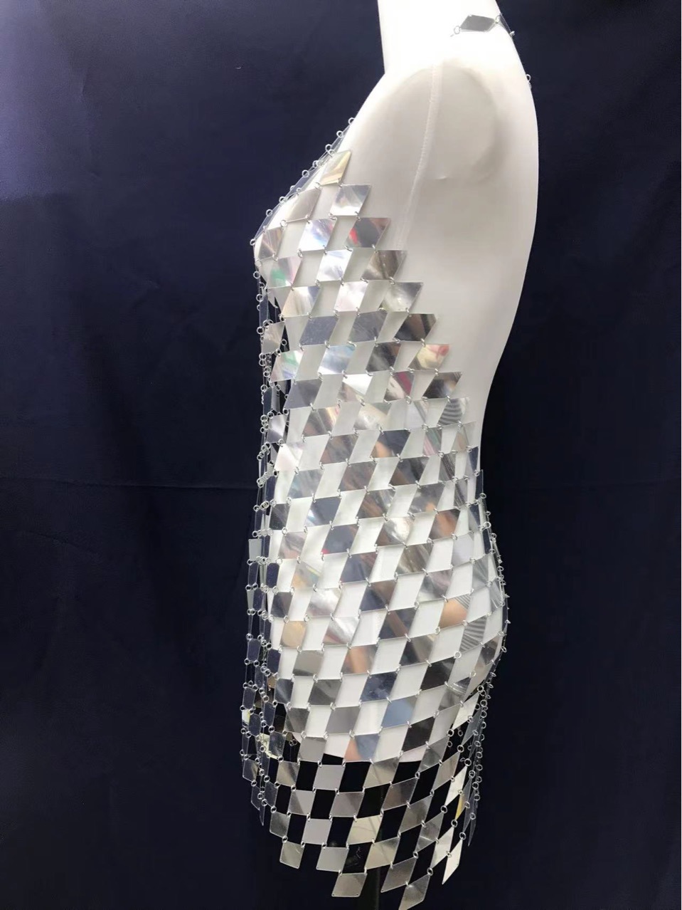 | nameOriginal | 2022 European and American Ebay hot sexy fishing net rhinestone sling neck hollow vest skirt transparent glass material |