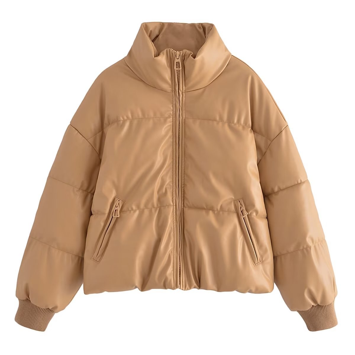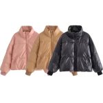 | nameOriginal | 2022 European and American street style autumn and winter women's clothing solid color urban casual stand collar three-color imitation leather cotton-padded jacket |