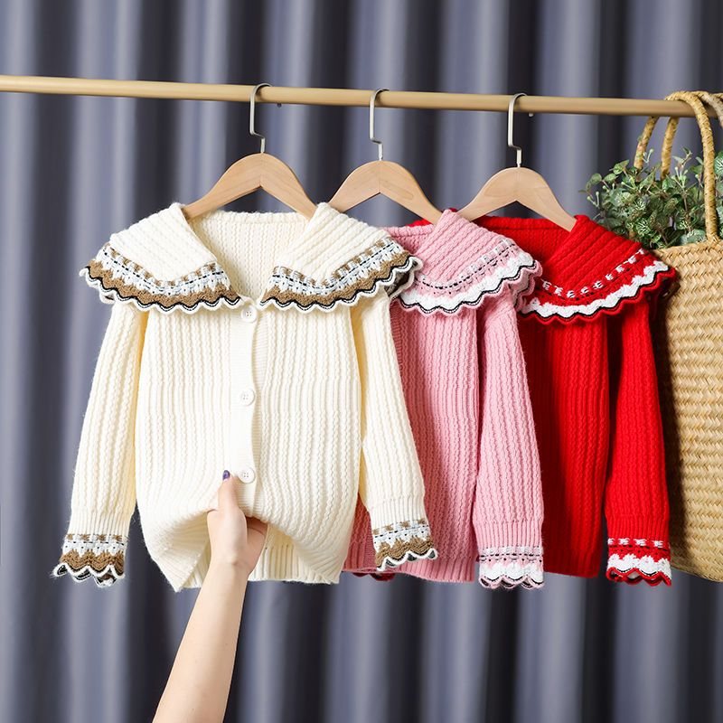 | nameOriginal | 2022 Girl's Cardigan Sweater Spring and Autumn Western Style Knitted Sweater Llace Collar Korean Style Children's Knitted Outer Sweater Cardigan |