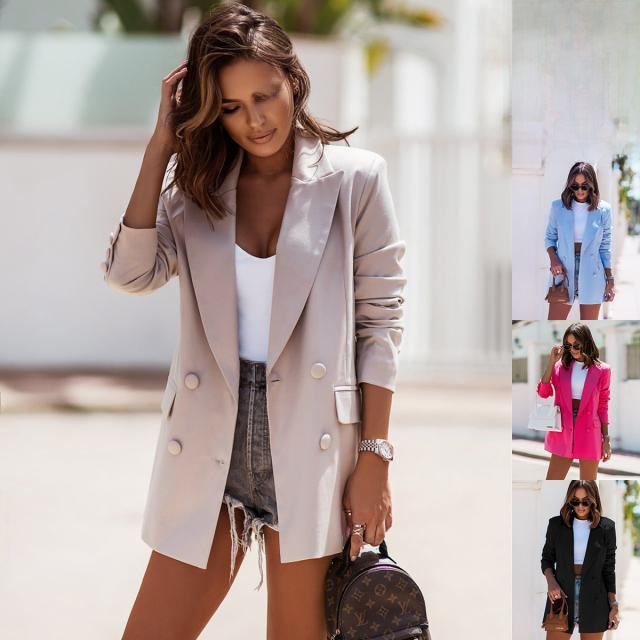 2022 independent station wish Amazon explosions autumn and winter long sleeve double-breasted suit collar coat women's clothing