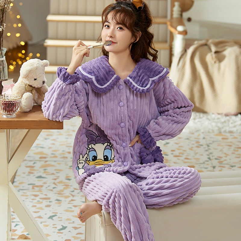 | nameOriginal | 2022 New Coral Velvet Pajamas for Women Autumn and Winter Plus Velvet Thickened Flannel Donald Duck Home Clothing Set |