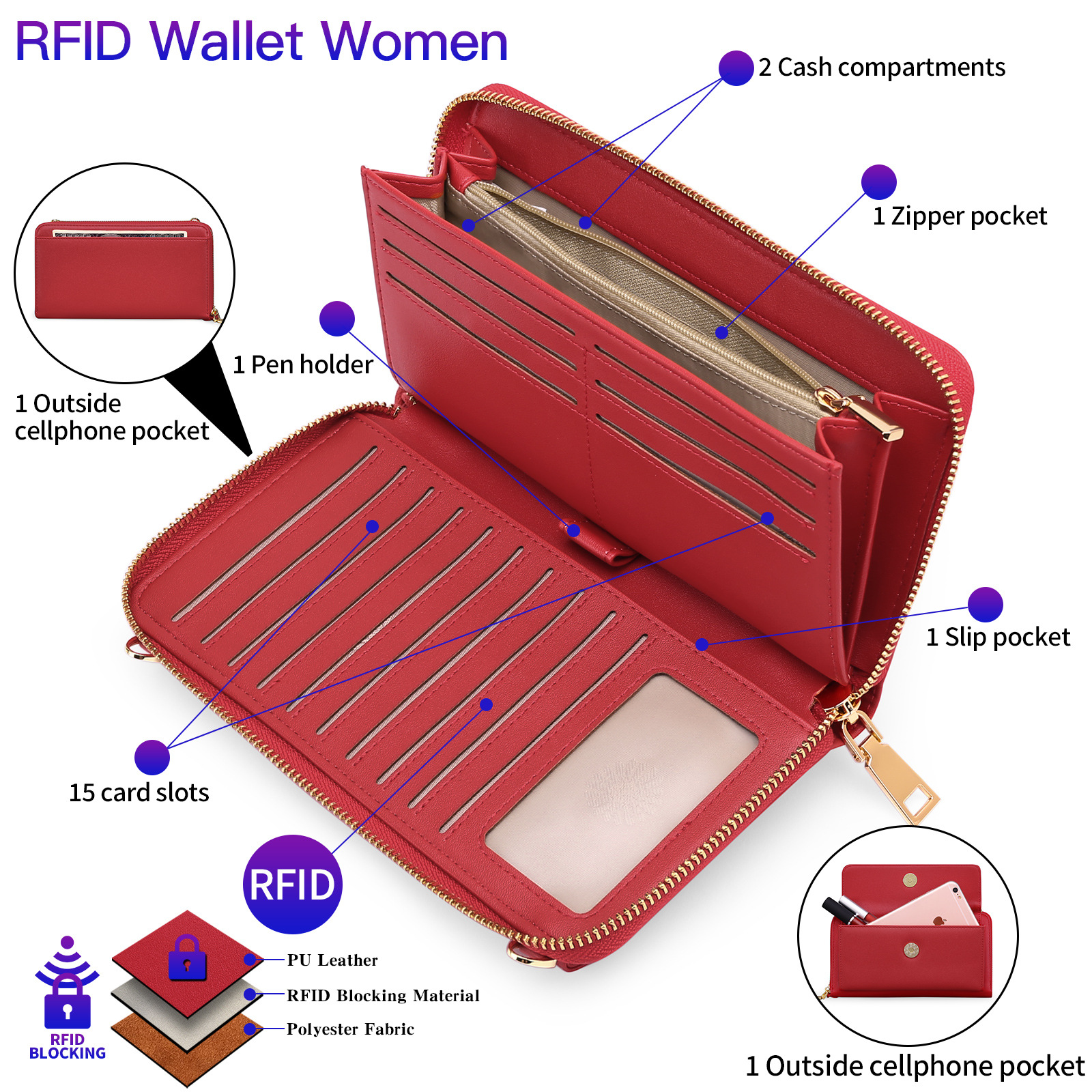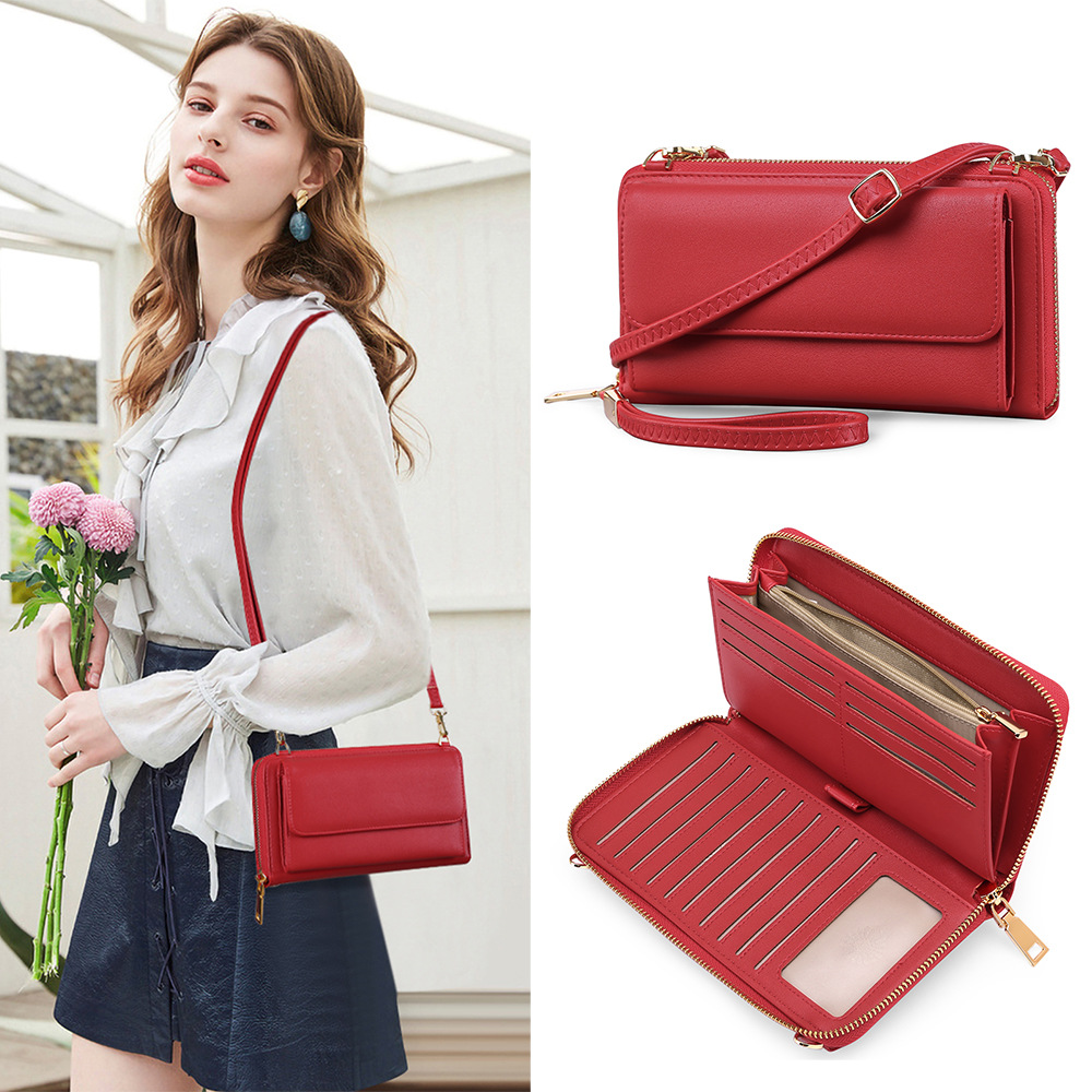 2022 New Fashion Zipper Women Wallet RFID Casual Shoulder Crossbody Bag Solid Color Mobile Phone Bag Spot