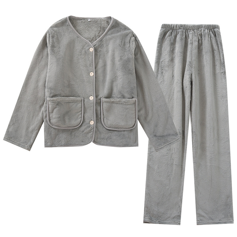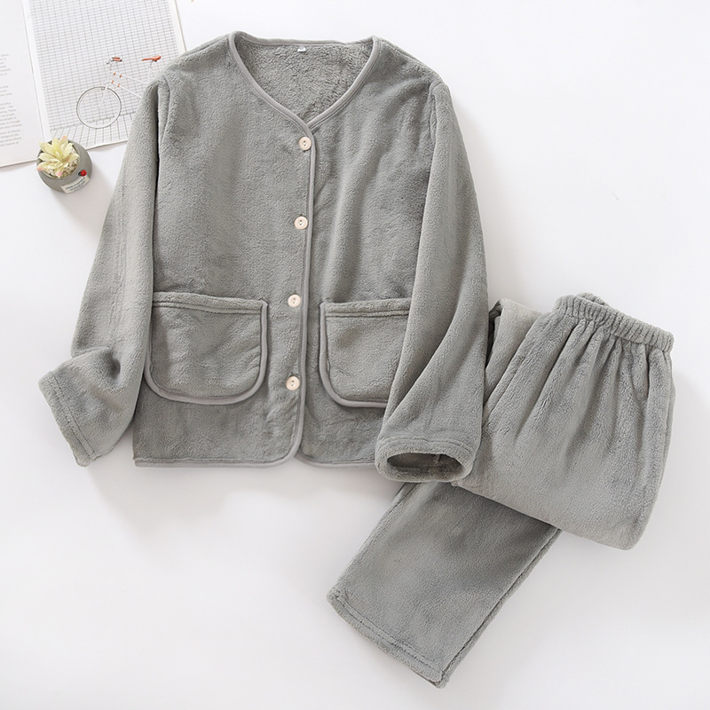 | nameOriginal | 2022 New Fleece-lined Thickened Home Clothes Pajamas Women's Autumn and Winter Coral Fleece Crewneck Solid Color Cardigan Flannel |