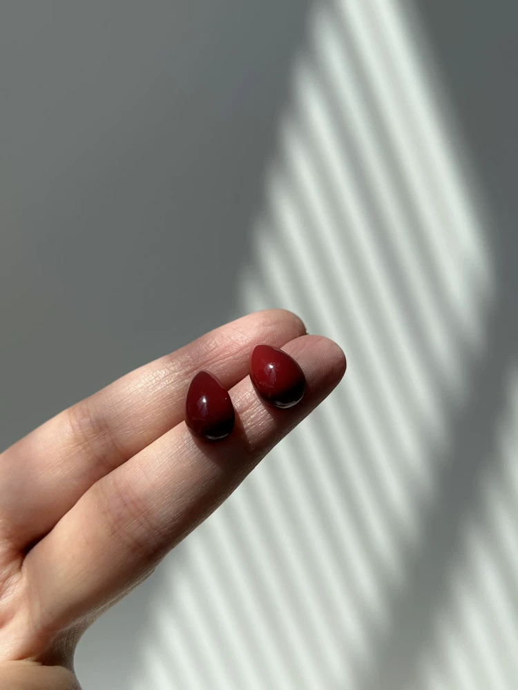 2022 New French Retro Red Water Drop Earrings Elegant Hong Kong Style Light Luxury Temperament Burgundy Silver Needle Earrings Versatile