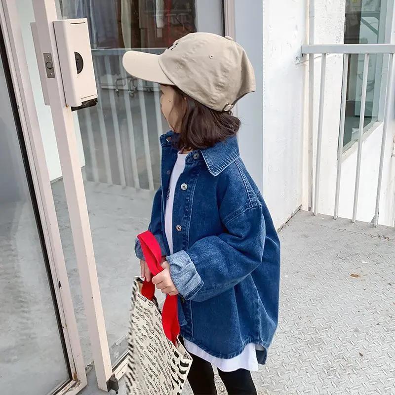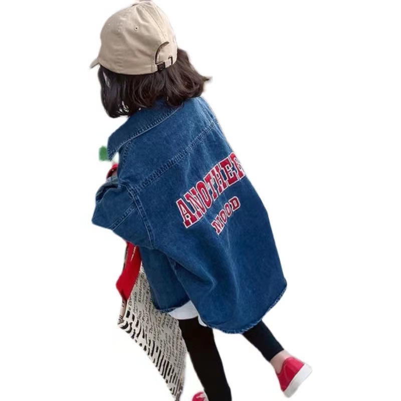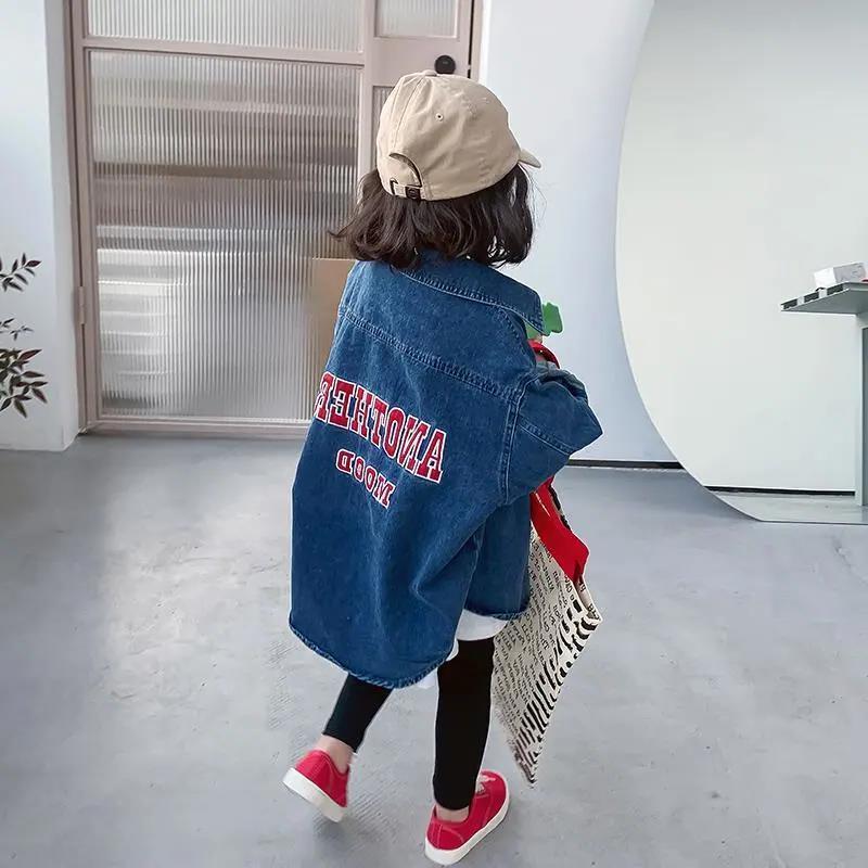 2022 New girls' mid-length Denim coat spring and autumn fashionable children's net red top baby 1160