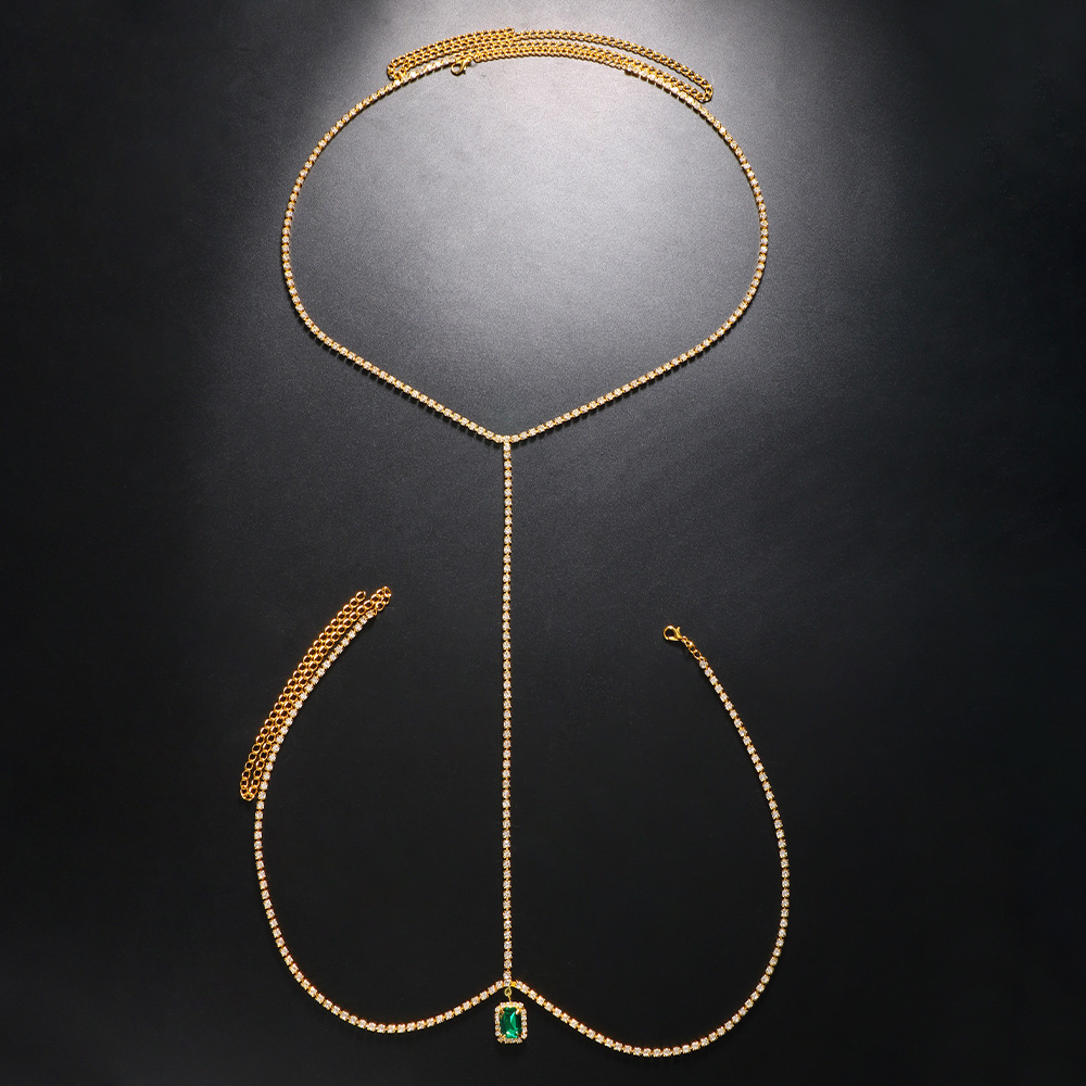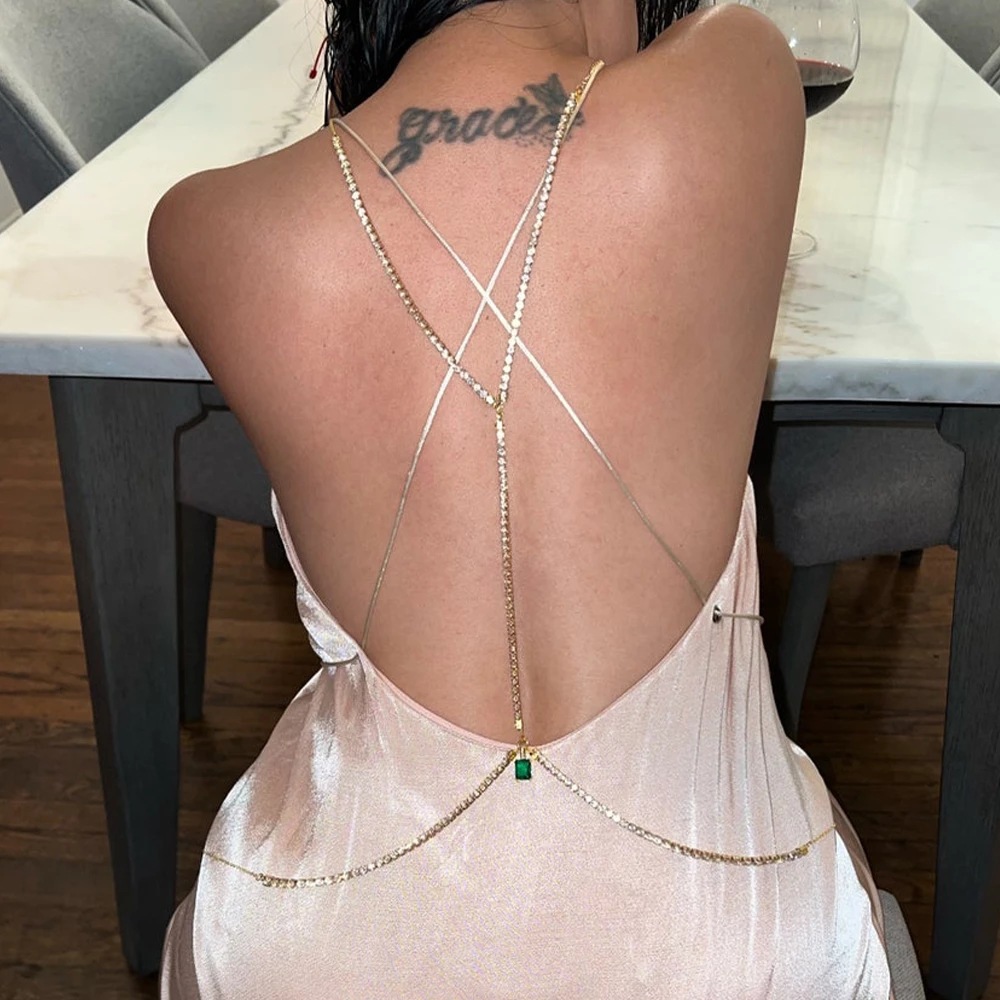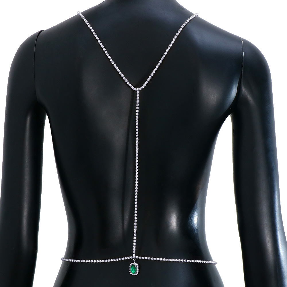 | nameOriginal | 2022 new green diamond pendant Back chain shiny rhinestone sexy body chain dress accessories Back chain06 |