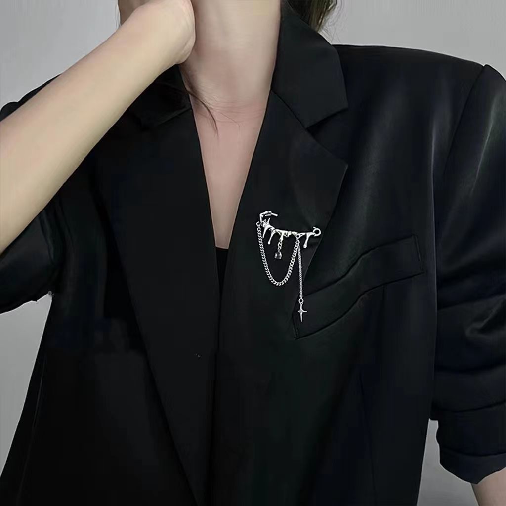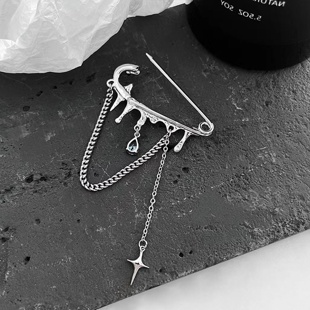 2022 New Liquid Tassel Exquisite Brooch Women ins Niche Design Hip-hop High-end Suit Pin Corsage