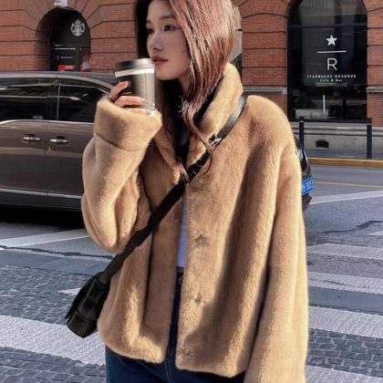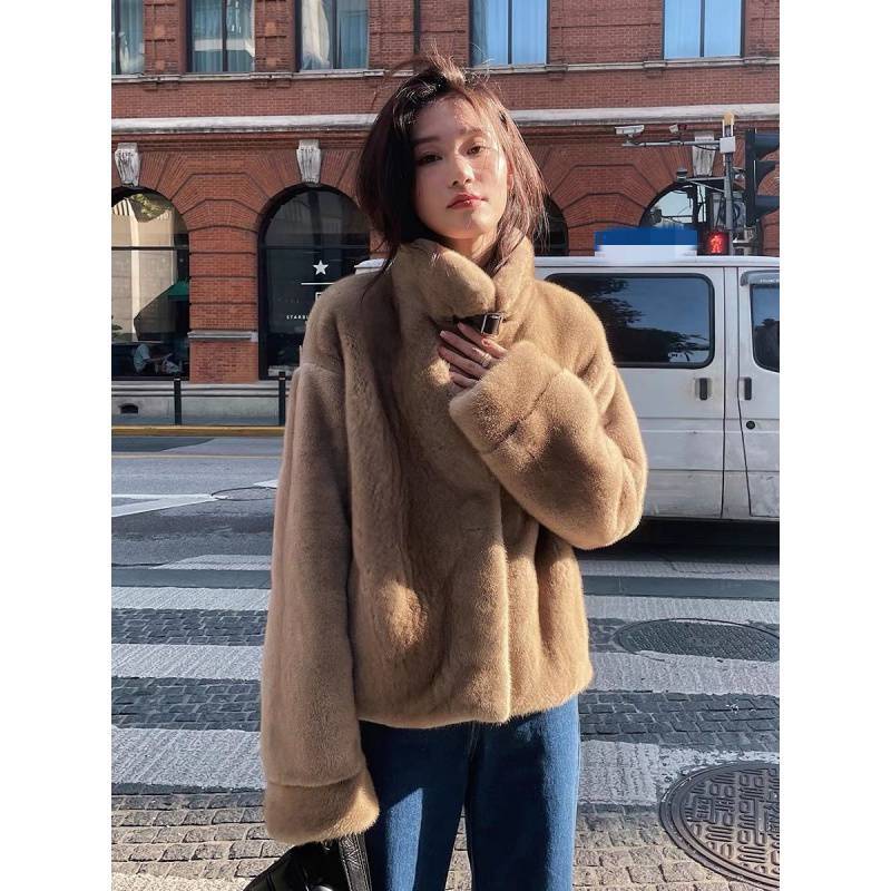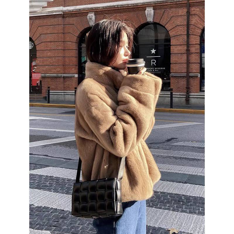 2022 new mink coat women’s faux leather autumn and winter thickened short fashionable loose coat