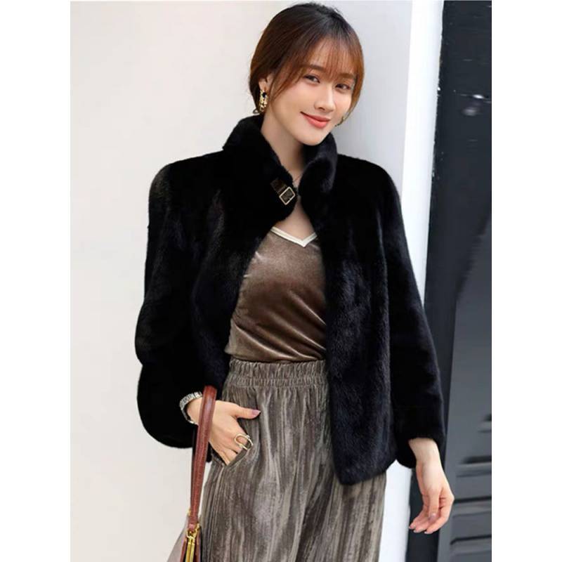 2022 new mink coat women's faux leather autumn and winter thickened short fashionable loose coat