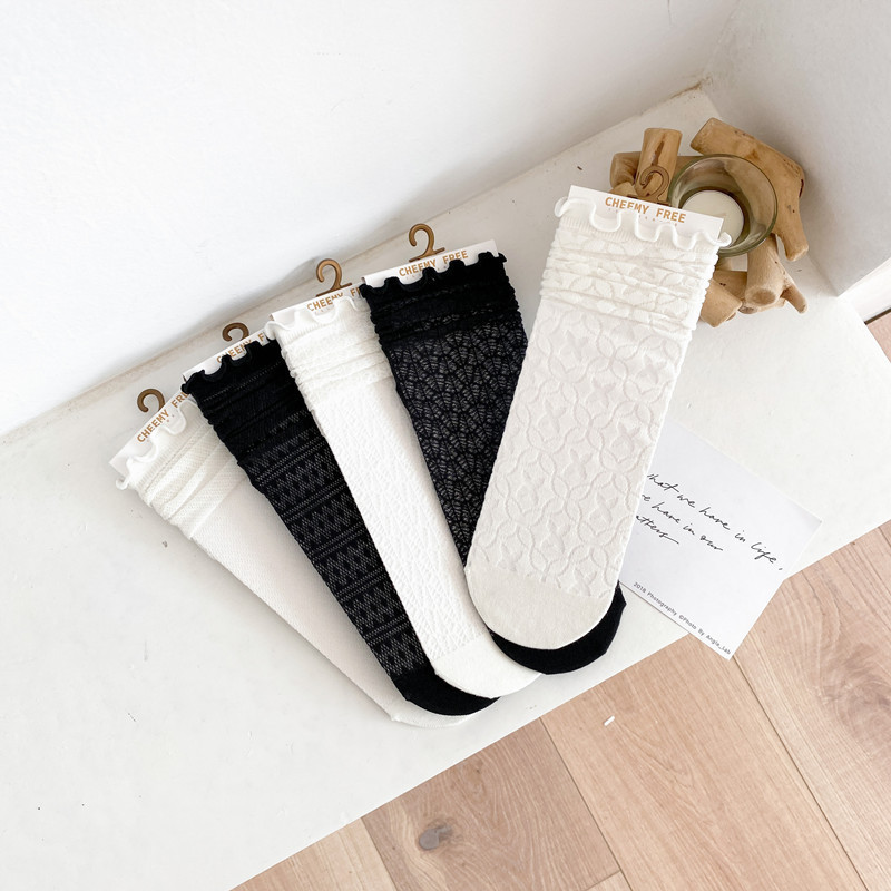 | nameOriginal | 2022 new socks women's black and white wooden ear mesh hollow pile socks women's Lolita wind socks |