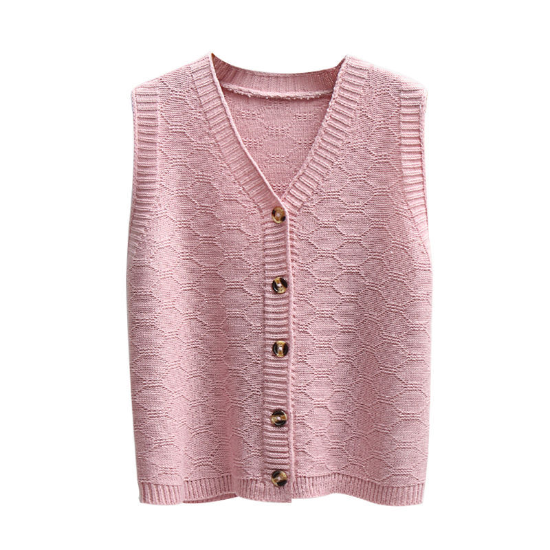 2022 New Spring and Autumn Korean Style Cardigan Knitted Vest Women’s V-neck Sweater Vest Sleeveless Wool Waistcoat Vest