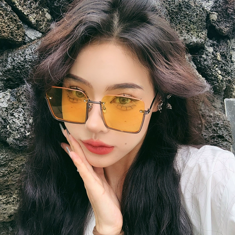 2022 New Women's Sunglasses Large Frame Round Face Slimming Transparent Yellow Anti-UV Driving Fashion Sunglasses