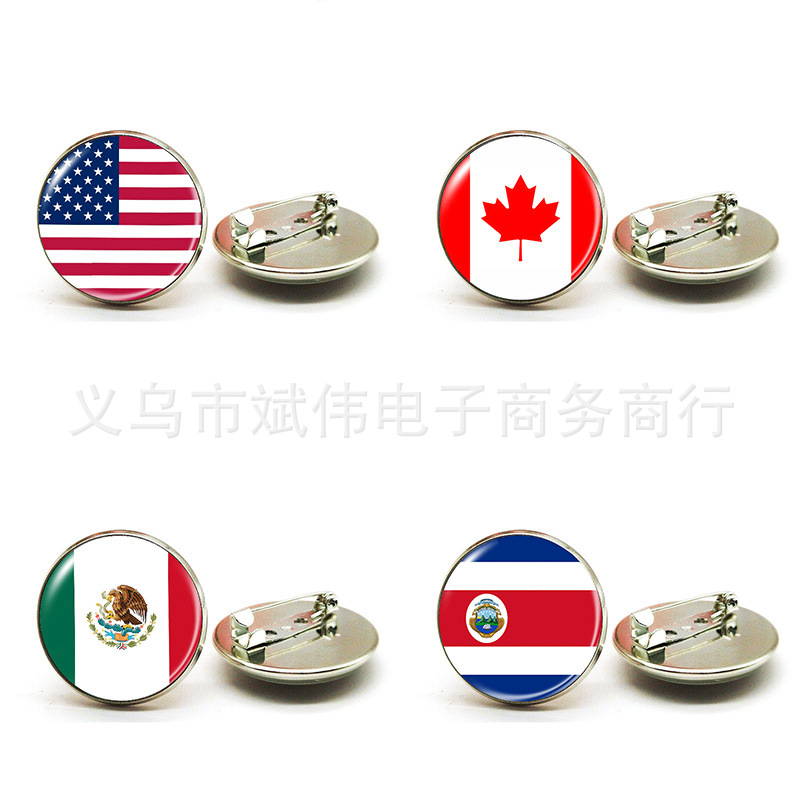 2022 Qatar Football World Cup Top 32 National Flag Time Gem Metal Brooch Badge Clothing Pin Wholesale