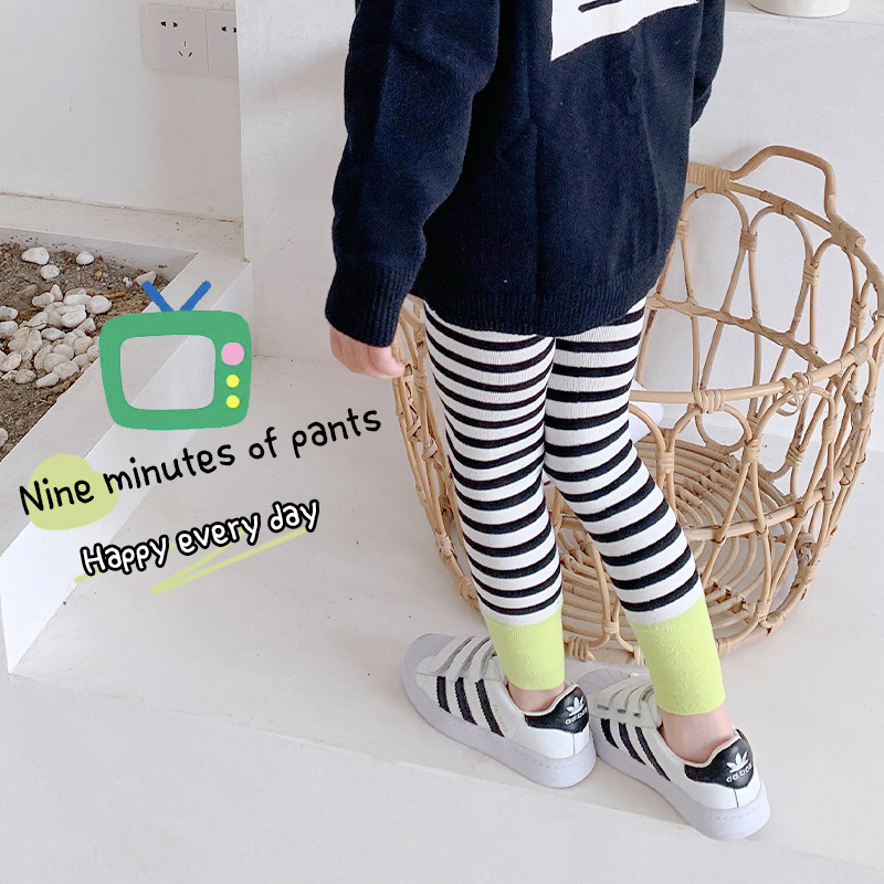 | nameOriginal | 2022 Spring and Autumn New Girls' Outer Wear Striped Leggings Korean Fashionable ins Horizontal Stripe Color Contrast Nine-point Pantyhose |