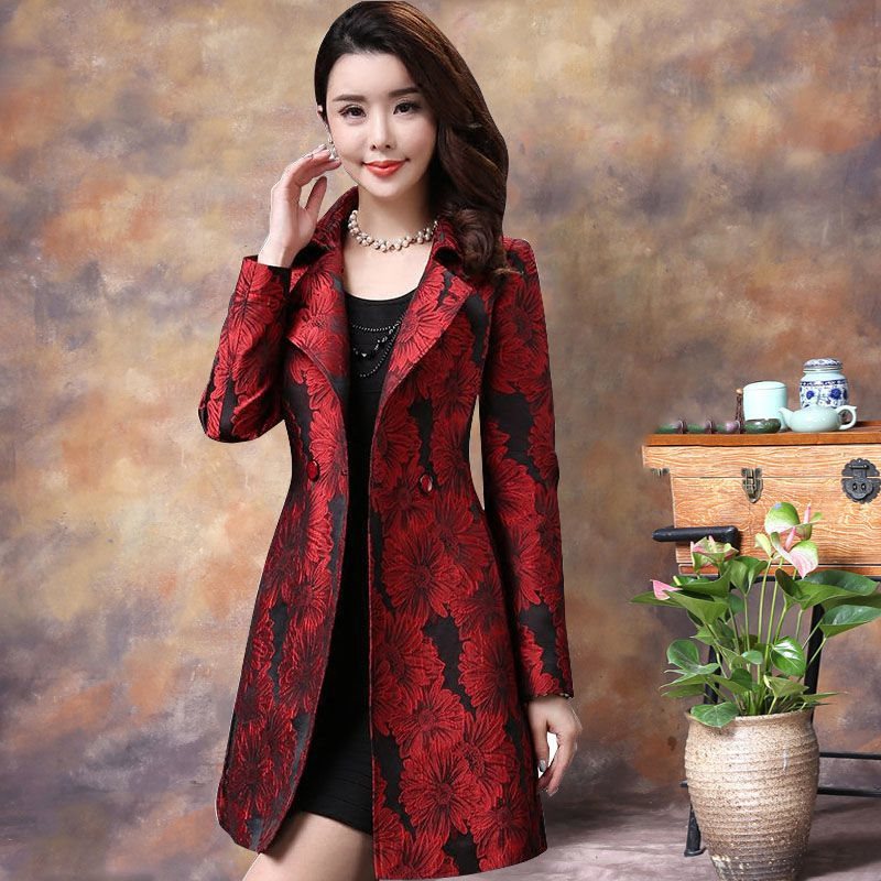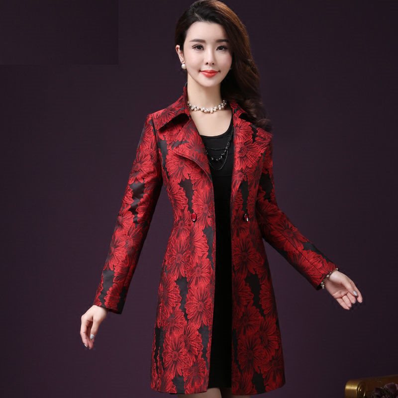 | nameOriginal | 2022 Spring and Autumn New Slim-fit Slimming Korean Style Fashionable Women's Coat Mother's Mid-length Red Printed Coat |