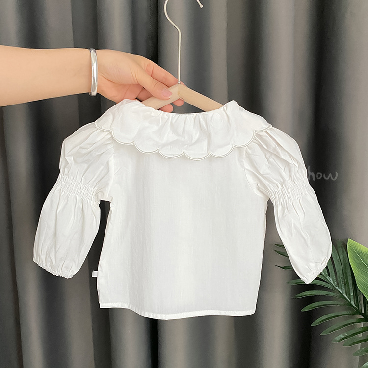 2022 Spring and Autumn New Women's Cute Small Lapel Top Girls' Autumn Girls' Belted Sleeve Cotton Shirt 0029