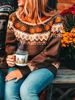 | nameOriginal | 2022 Spring and Autumn Street Trendy Printed European and American Tight Knitted Pumpkin Pullover Brown Crewneck Knitted Sweater |