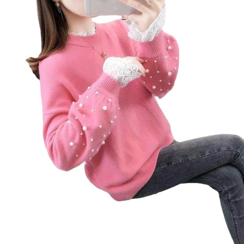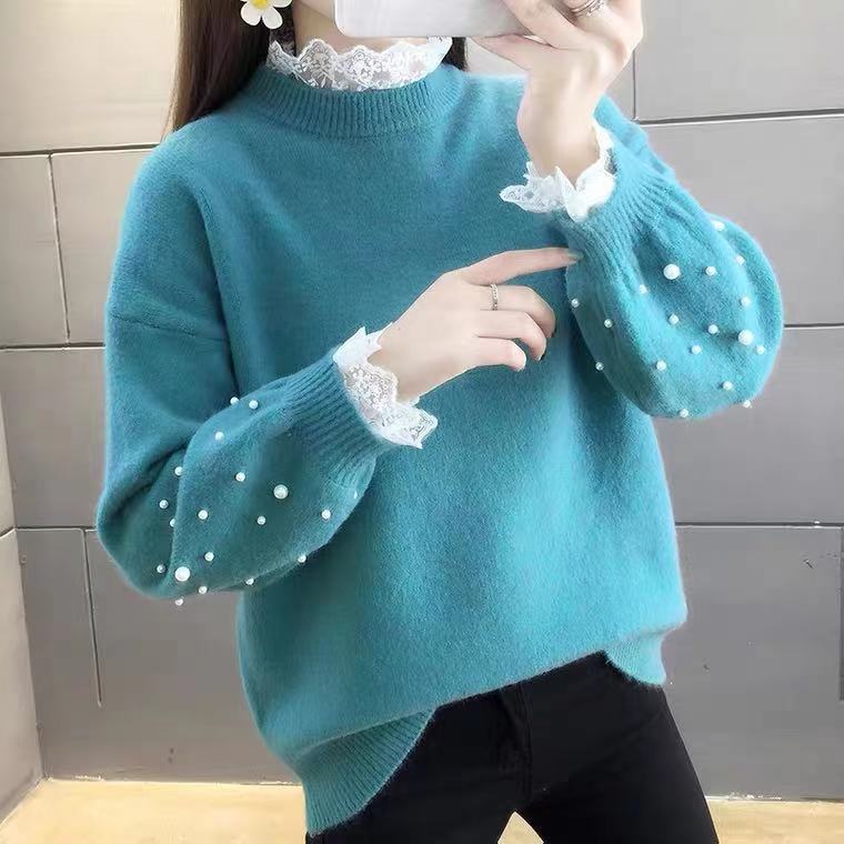 | nameOriginal | 2022 Spring and Autumn Versatile Year New Arrival Lace Fashionable Gas Base Shirt Half High Collar Beaded Fake Two-Piece Sweater for Women |