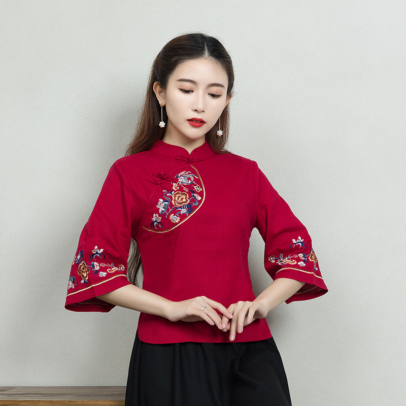 | nameOriginal | 2022 Spring and Summer New Cotton and Linen Embroidered Cheongsam Top Retro Ethnic Tea Clothing Tea House Hotel Work Top |